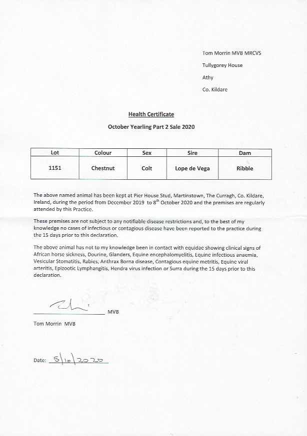 December Foal Sale 2020 lot 725 C. by Zoffany (IRE) 2020, Tinnakill House, Ireland=>Manister House Stud 47,000 gns