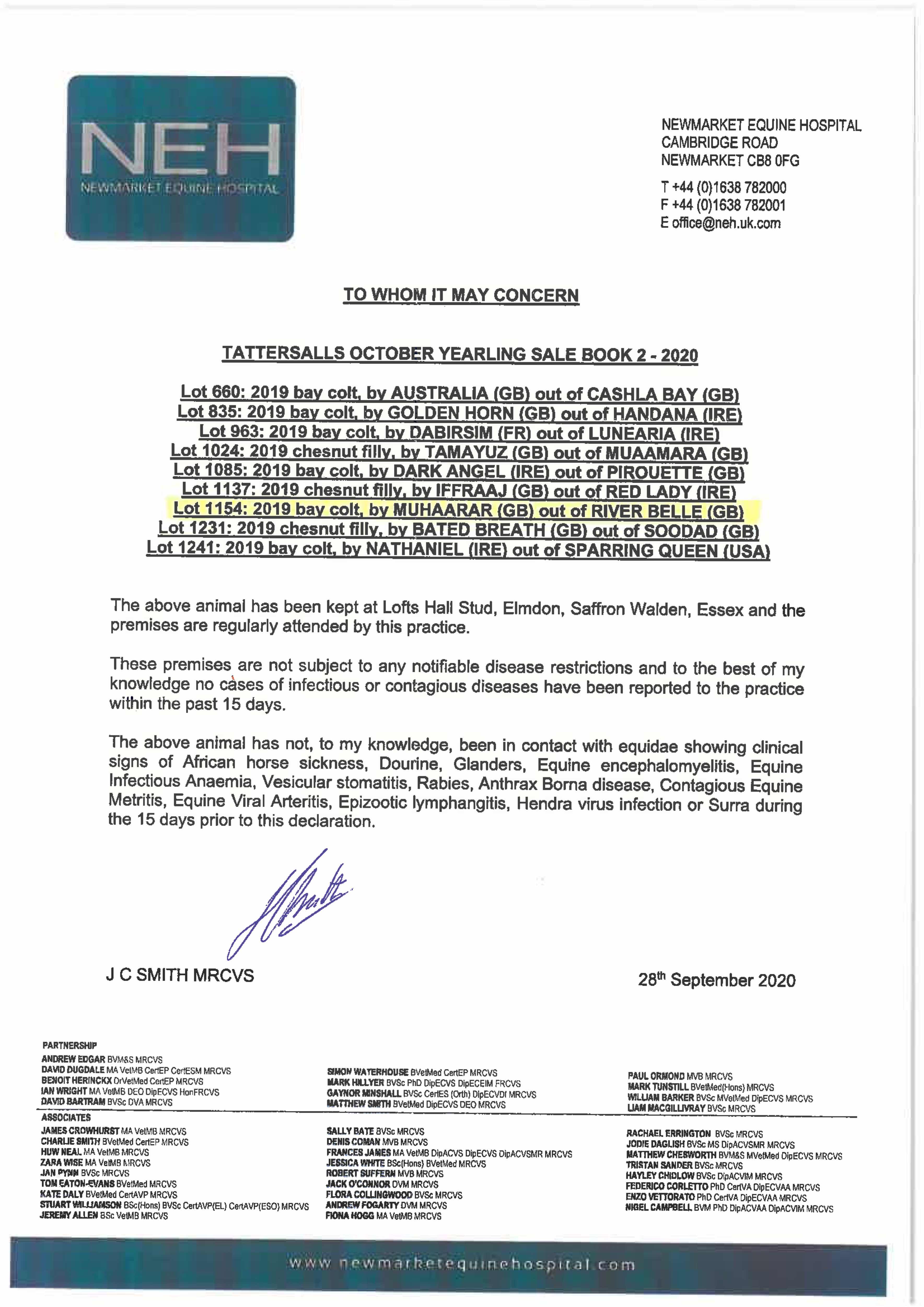Consignor: Lofts Hall Stud
