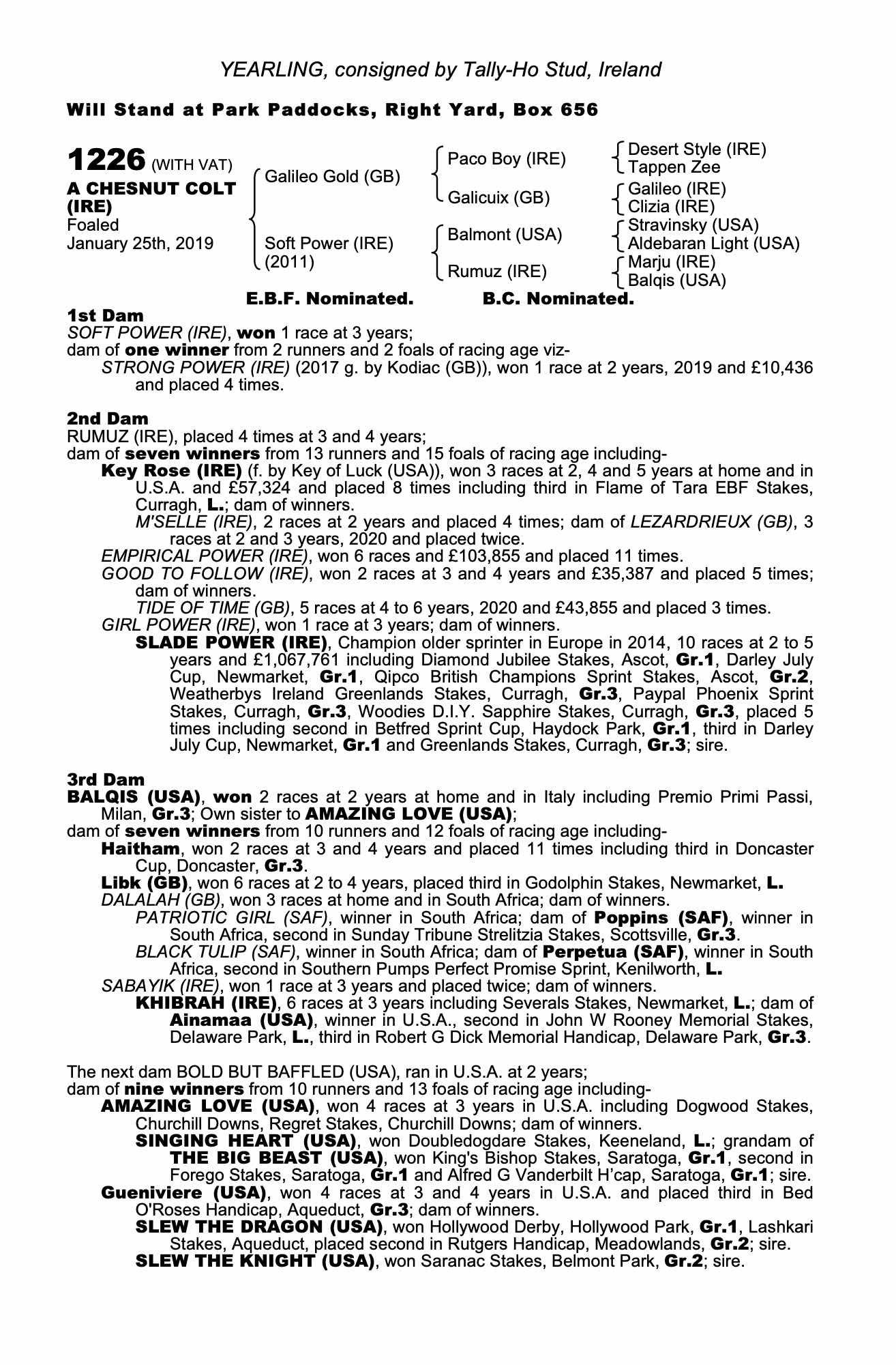 Consignor: Tally-Ho Stud, Ireland