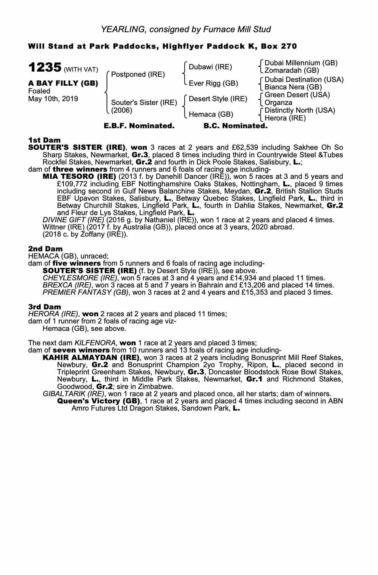 December Mare Sale 2019 lot 1537 Mia Tesoro (IRE) (M. by Danehill Dancer (IRE)), Jamie Railton (Agent)=>Joe Foley 100,000 gns