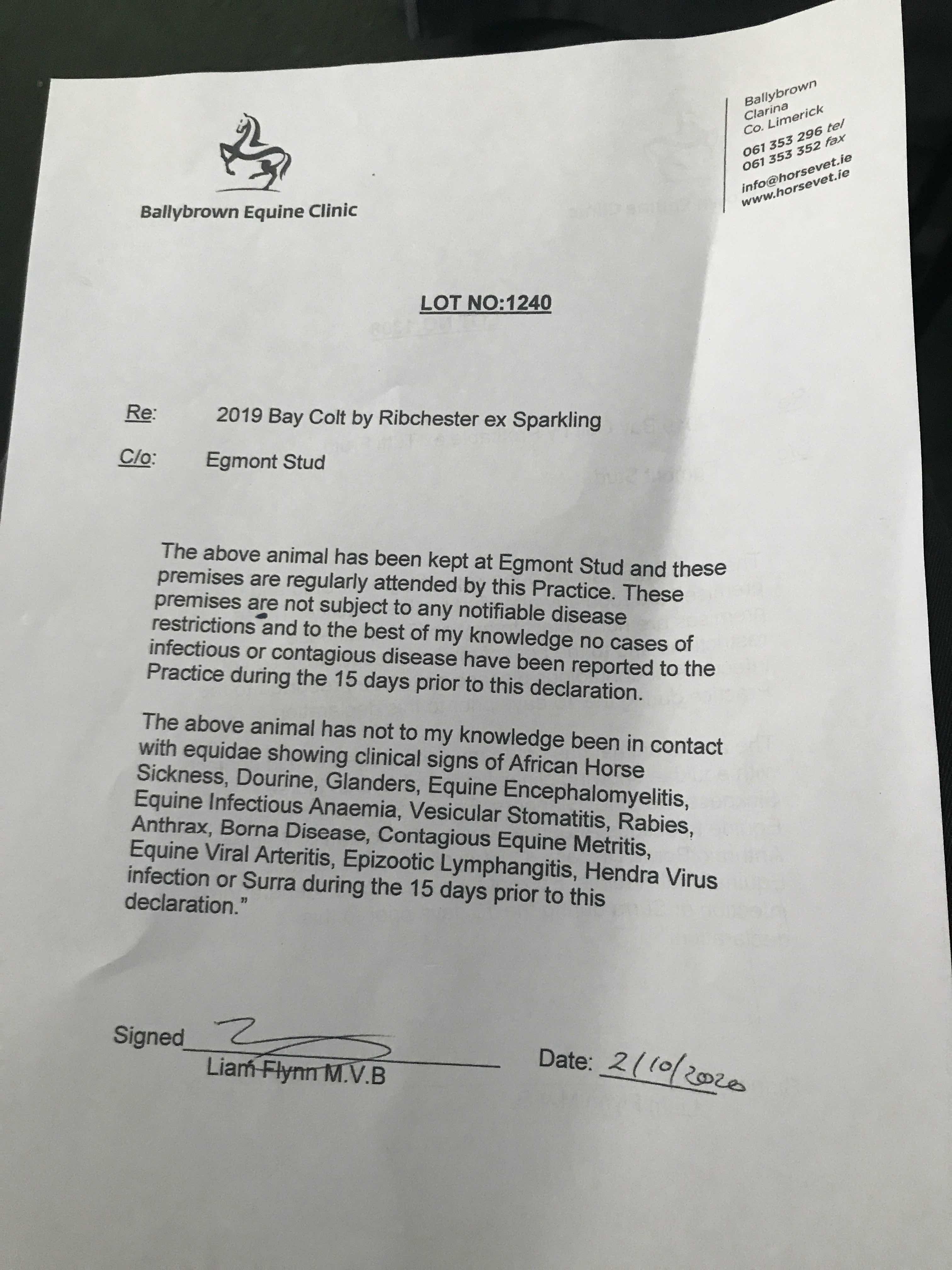 Consignor: Egmont Stud, Ireland