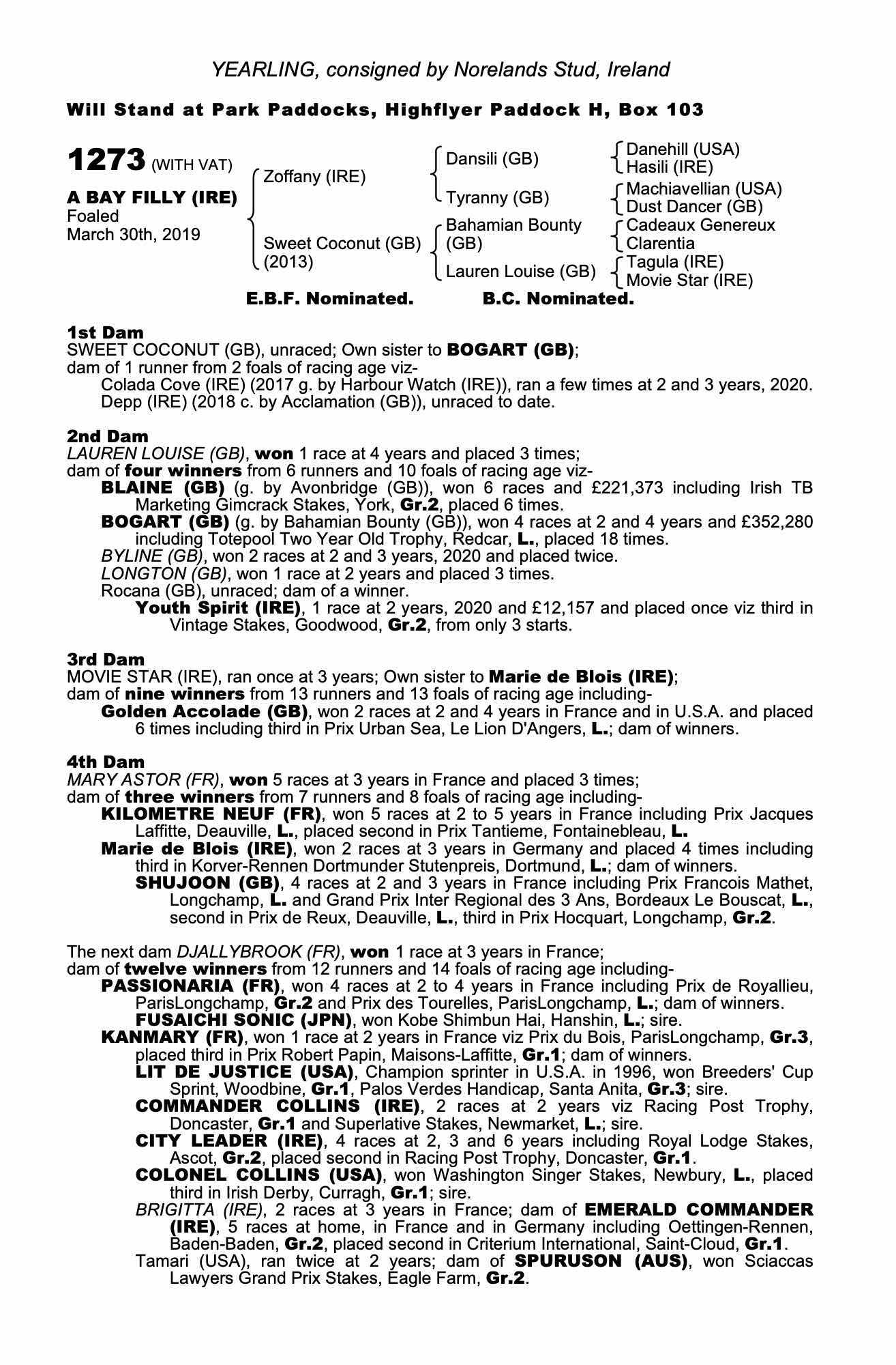 October Yearling Sale, Book 3 2024 lot 1786 C. by Advertise (GB) 2023, WH Bloodstock=>David Easterby 3,000 gns