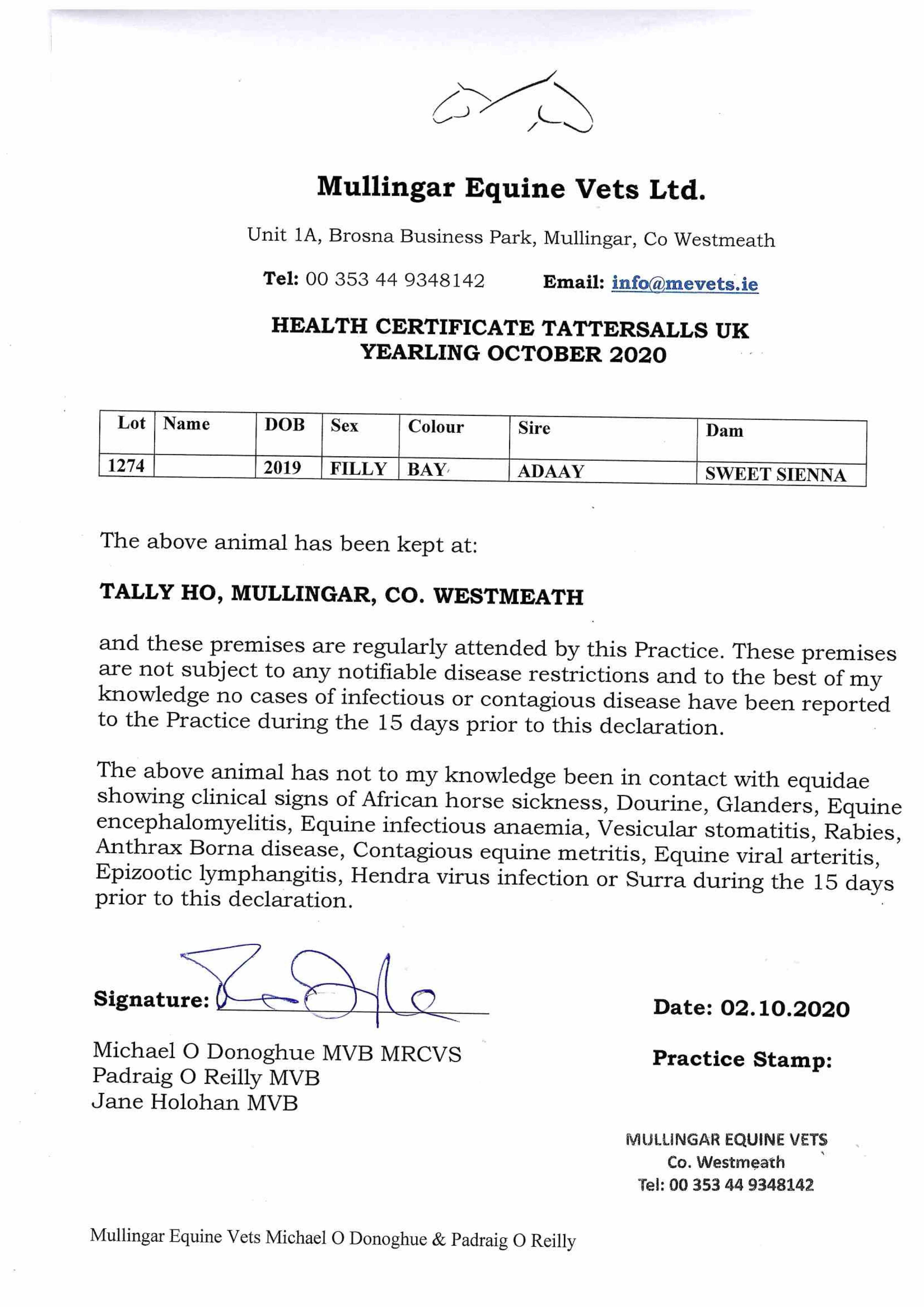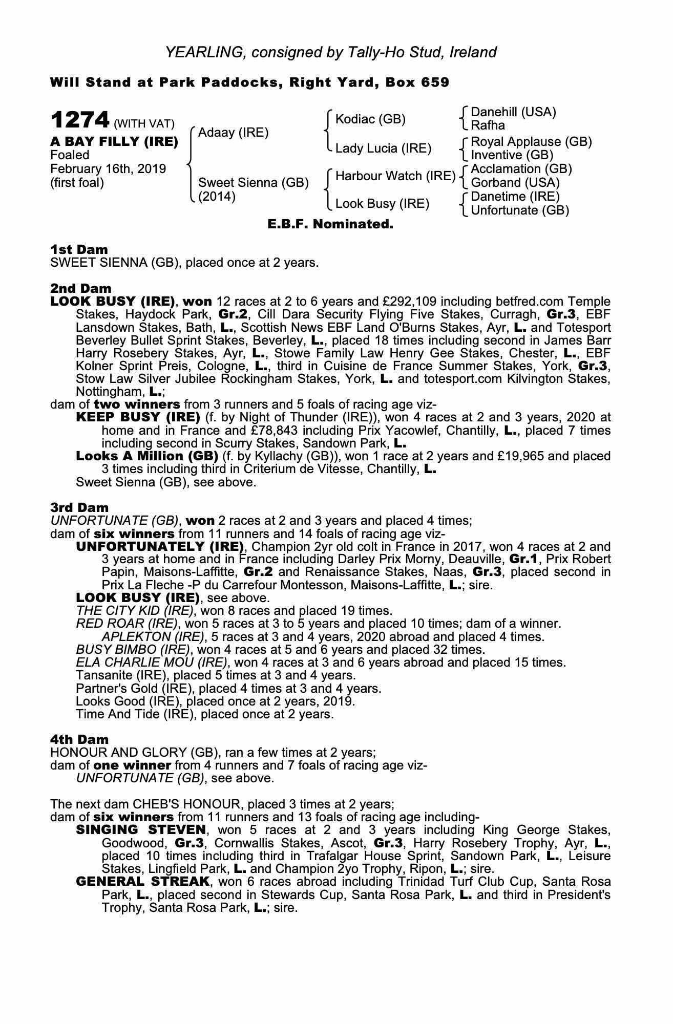 Consignor: Tally-Ho Stud, Ireland