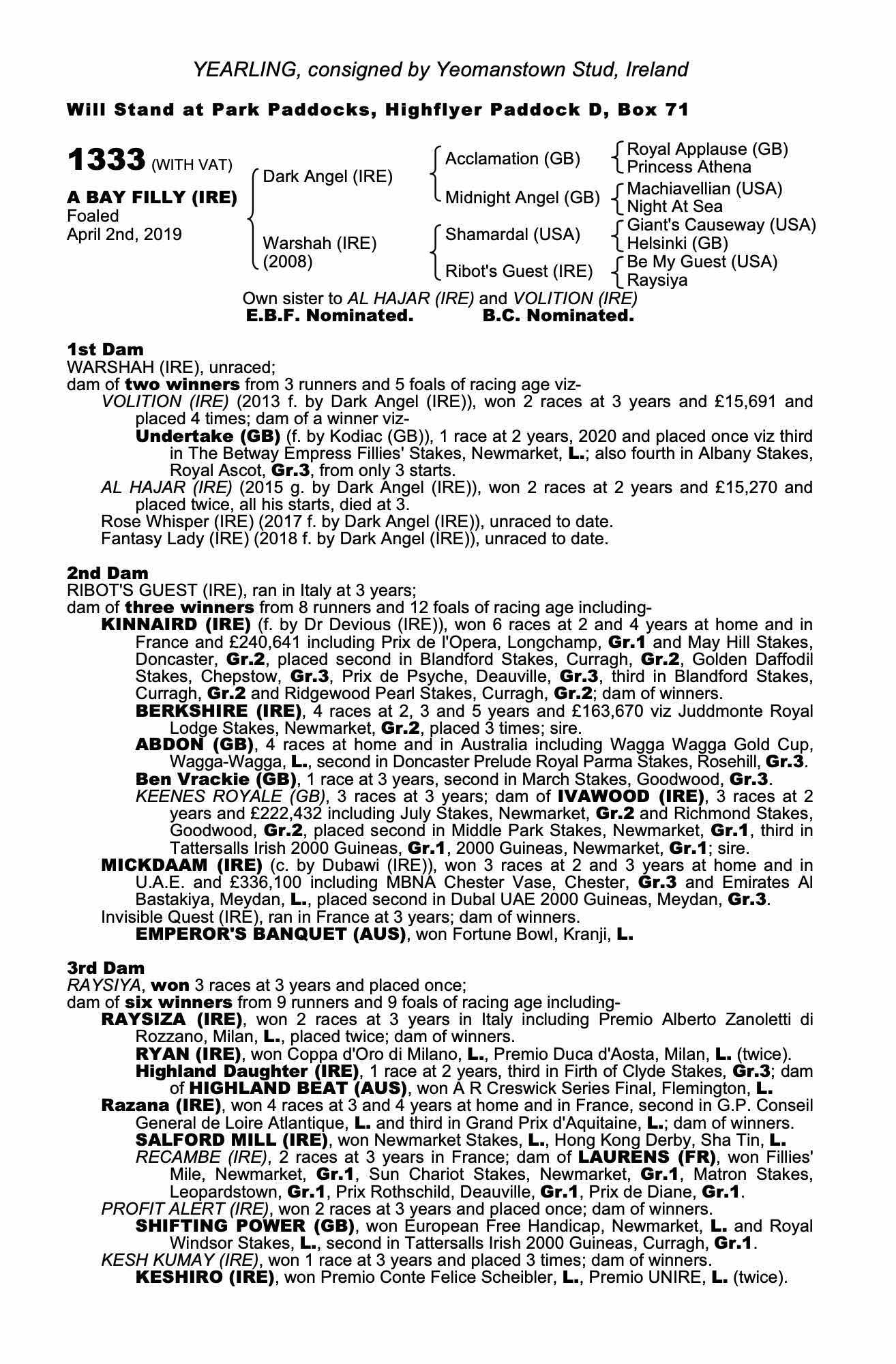 October Yearling Sale, Book 2 2019 lot 705 F. 2018, Yeomanstown Stud, Ireland=>Howson & Houldsworth / Genesis Thoroughbred 80,000 gns