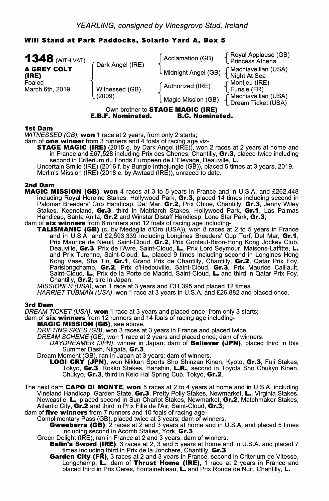 Consignor: Vinesgrove Stud, Ireland