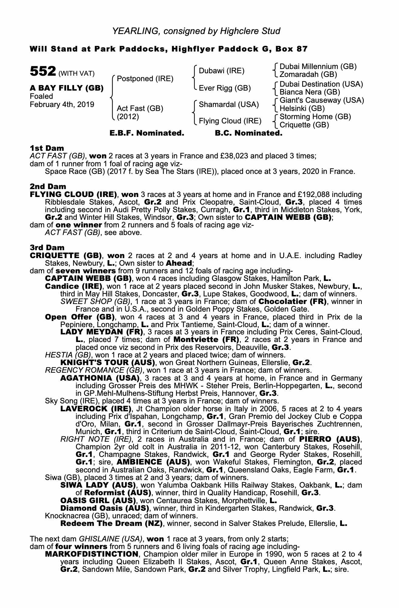 Consignor: Highclere Stud