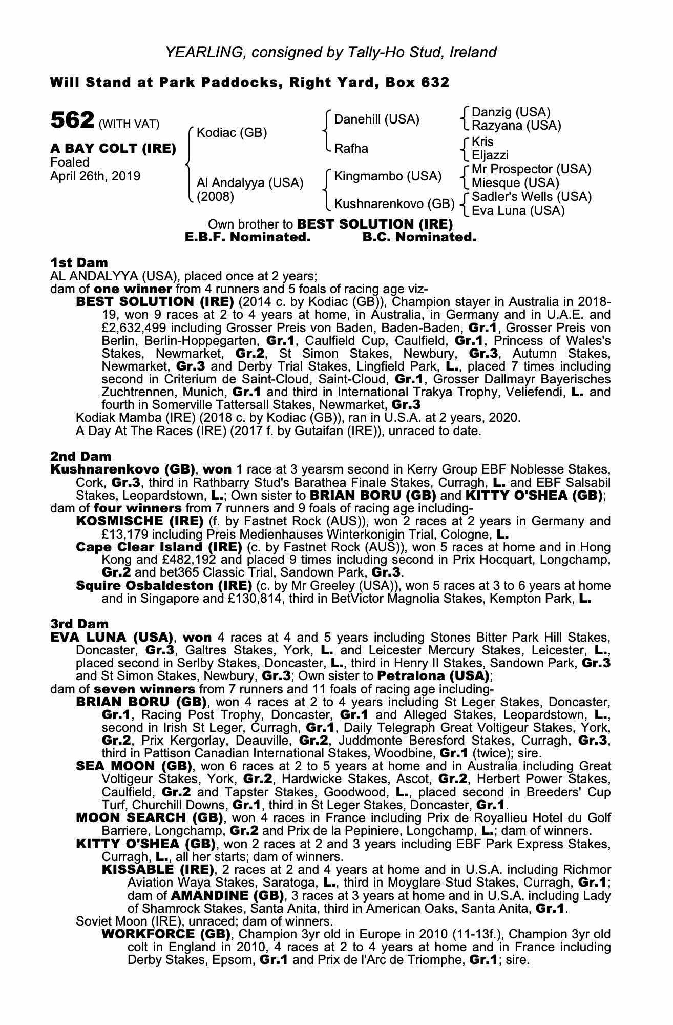 Consignor: Tally-Ho Stud, Ireland