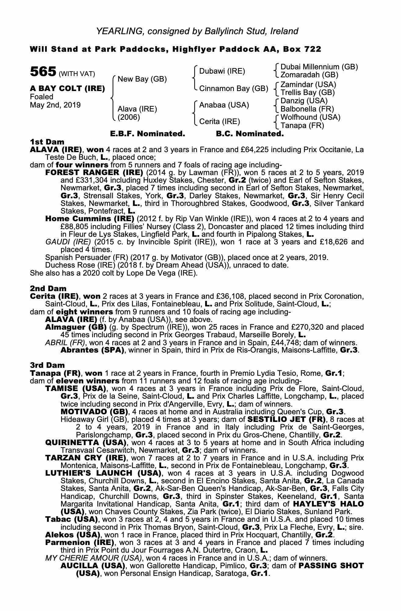 October Yearling Sale, Book 1 2025 lot 10 C. 2024, Ballylinch Stud, Ireland=>Godolphin 700,000 gns