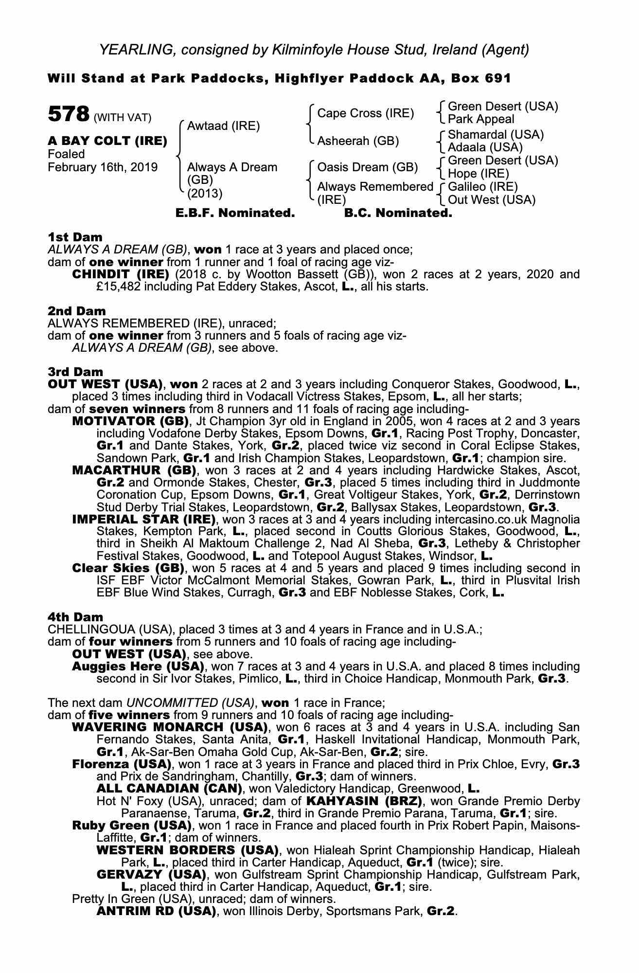 Consignor: Kilminfoyle House Stud, Ireland (Agent)