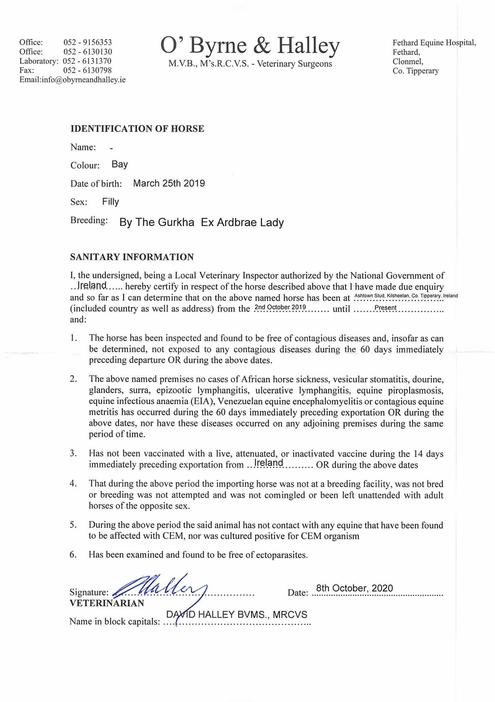 Online Sale - 7th March 2024 lot 17 Glorious Zoff (IRE) (G. by Zoffany (IRE)), Fergal O'Brien Racing=>Vendor 7,500 gns