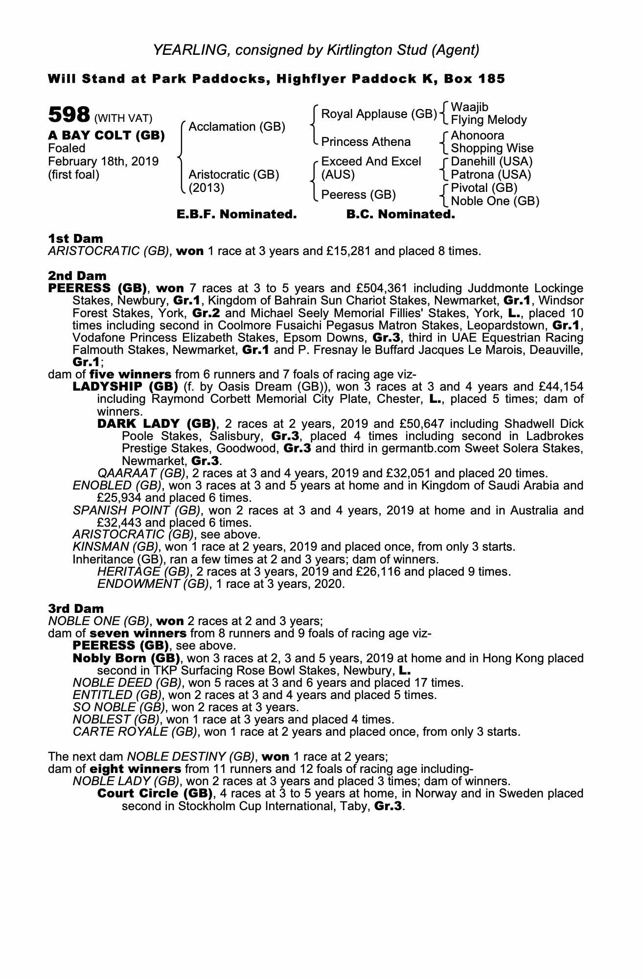 Consignor: Kirtlington Stud (Agent)