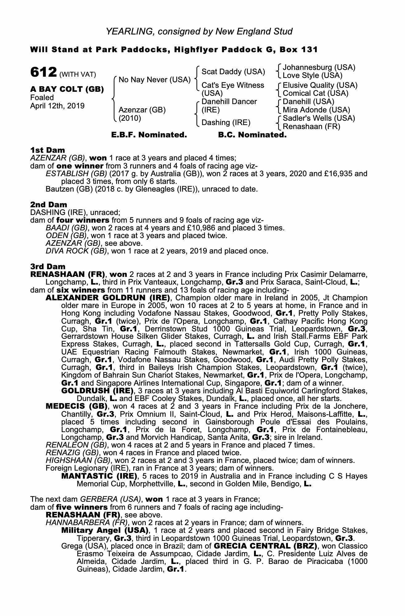 Online Sale - 15th August 2024 lot 106, Blue Diamond Stud Farm (UK) Ltd.=>Ryan Tongue 14,000 gns