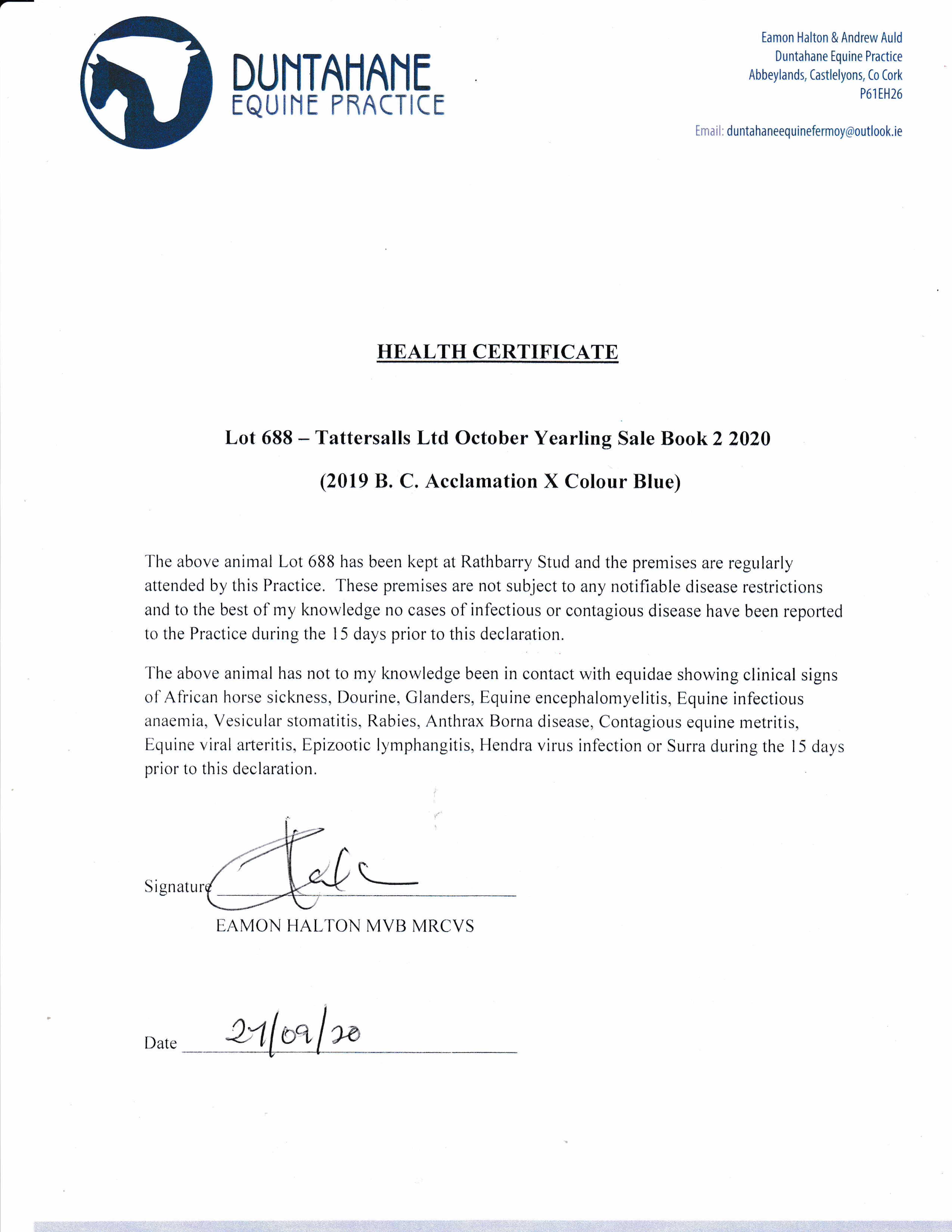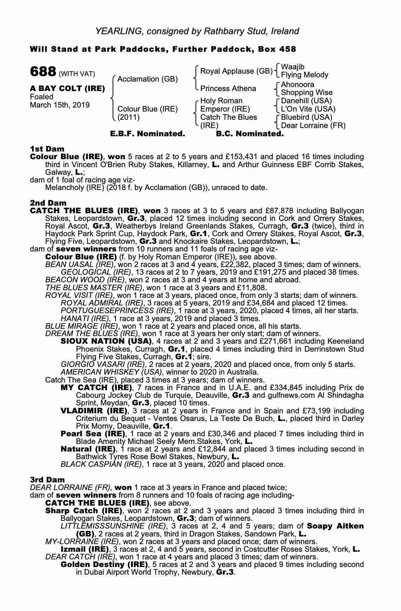 Consignor: Rathbarry Stud, Ireland