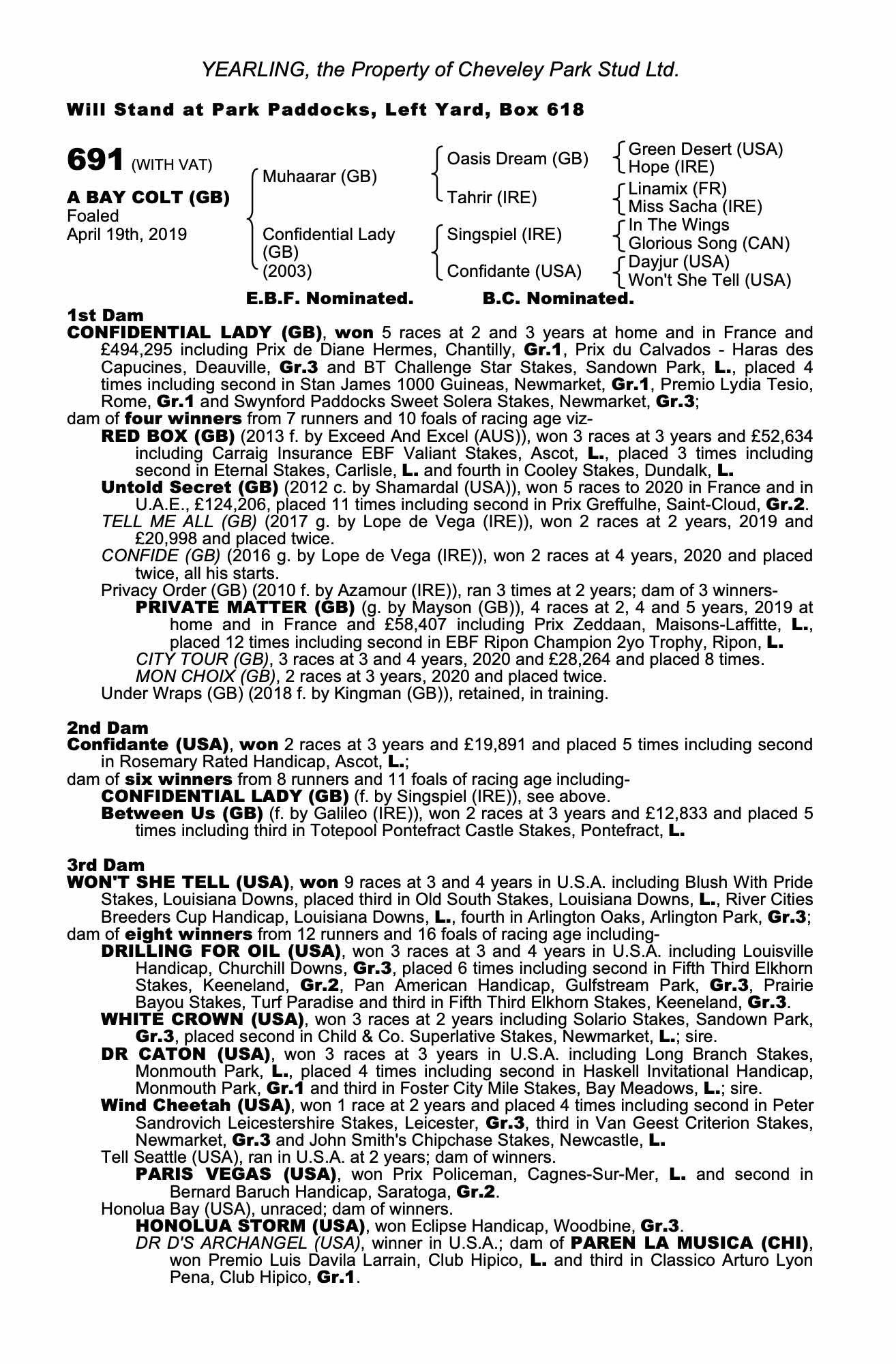 August Sale 2020 lot 711 Tell Me All (GB) (G. by Lope de Vega (IRE)), Heath House Stables (Sir Mark Prescott, Bt.)=>Voute Sales 180,000 gns