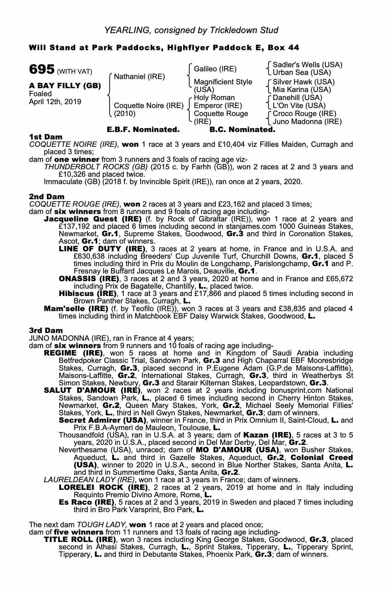 Online Sale - 19th September 2024 lot 45 Gold Minx (GB) (F. by Havana Gold (IRE)), Woodway Stables (Eve Johnson Houghton)=>Lot Not Sold 900 gns
