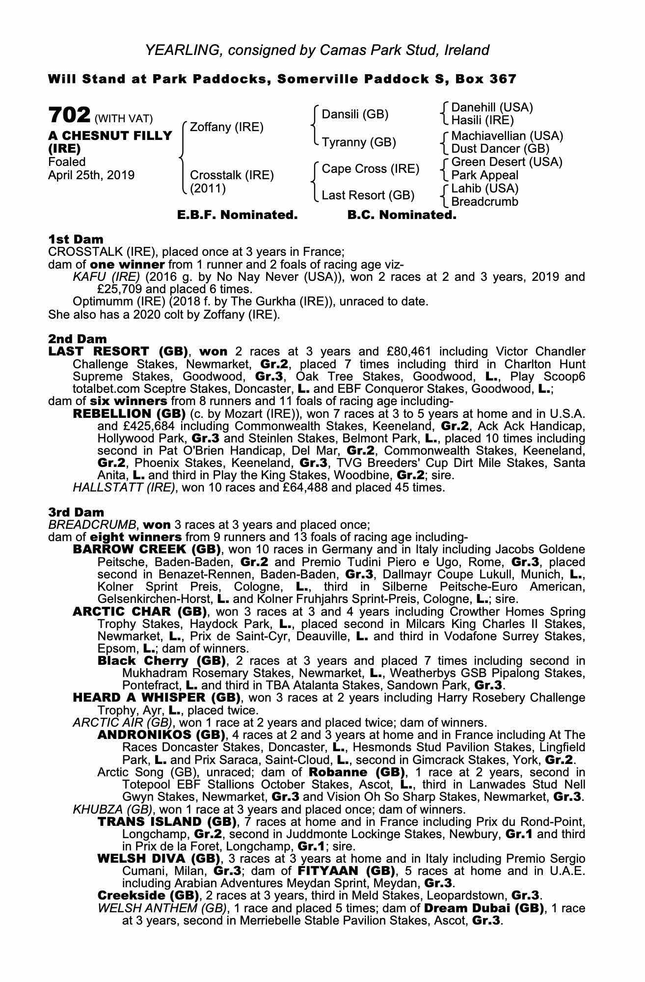 Consignor: Camas Park Stud, Ireland