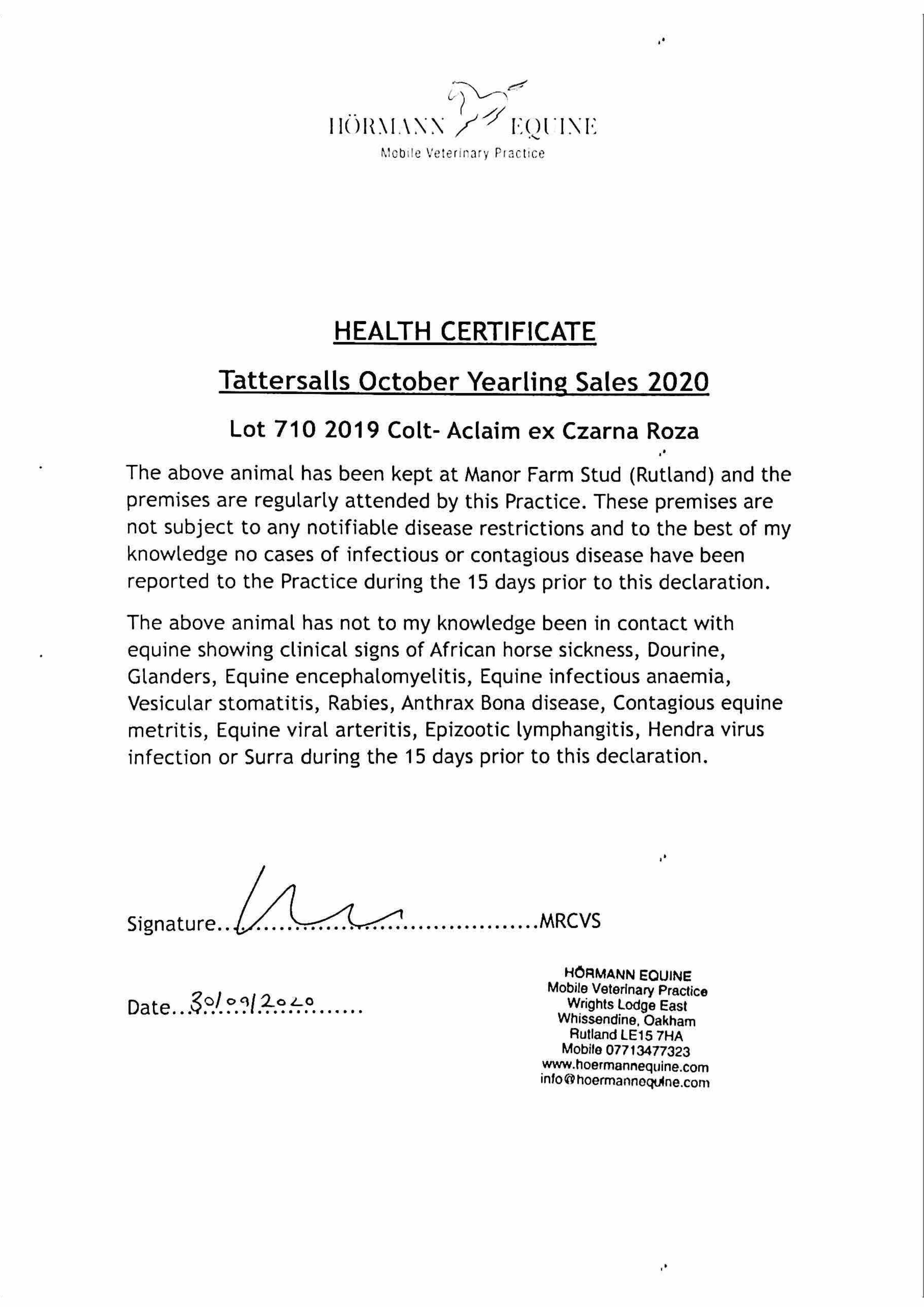December Foal Sale 2010 lot 576 F. by Royal Applause (GB) 2010, Overbury Stallions Ltd.=>Ballyphilip Stud 37,000 gns