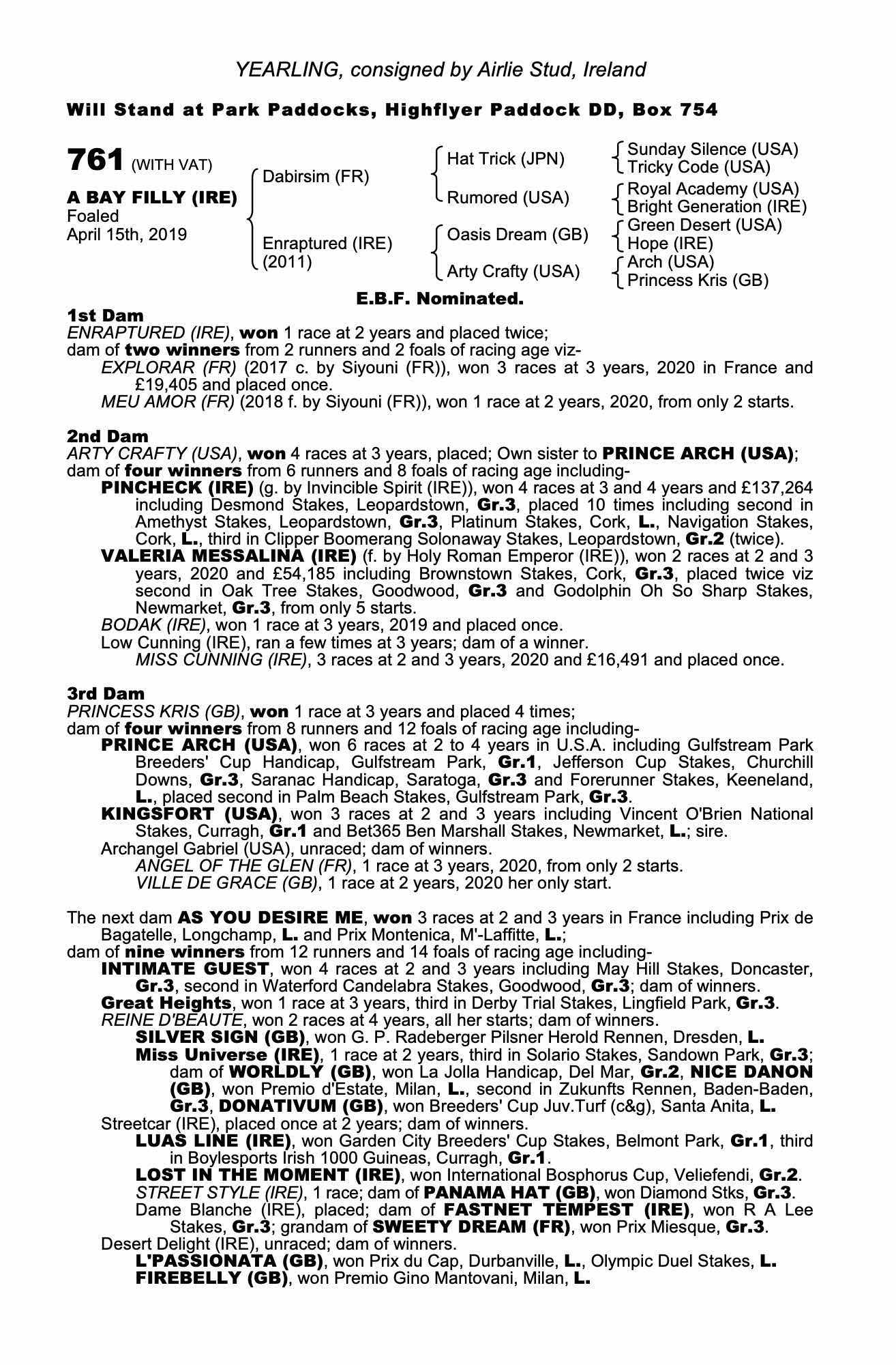 Lot 761 Dabirsim (FR) /Enraptured (IRE) B.F. (IRE)