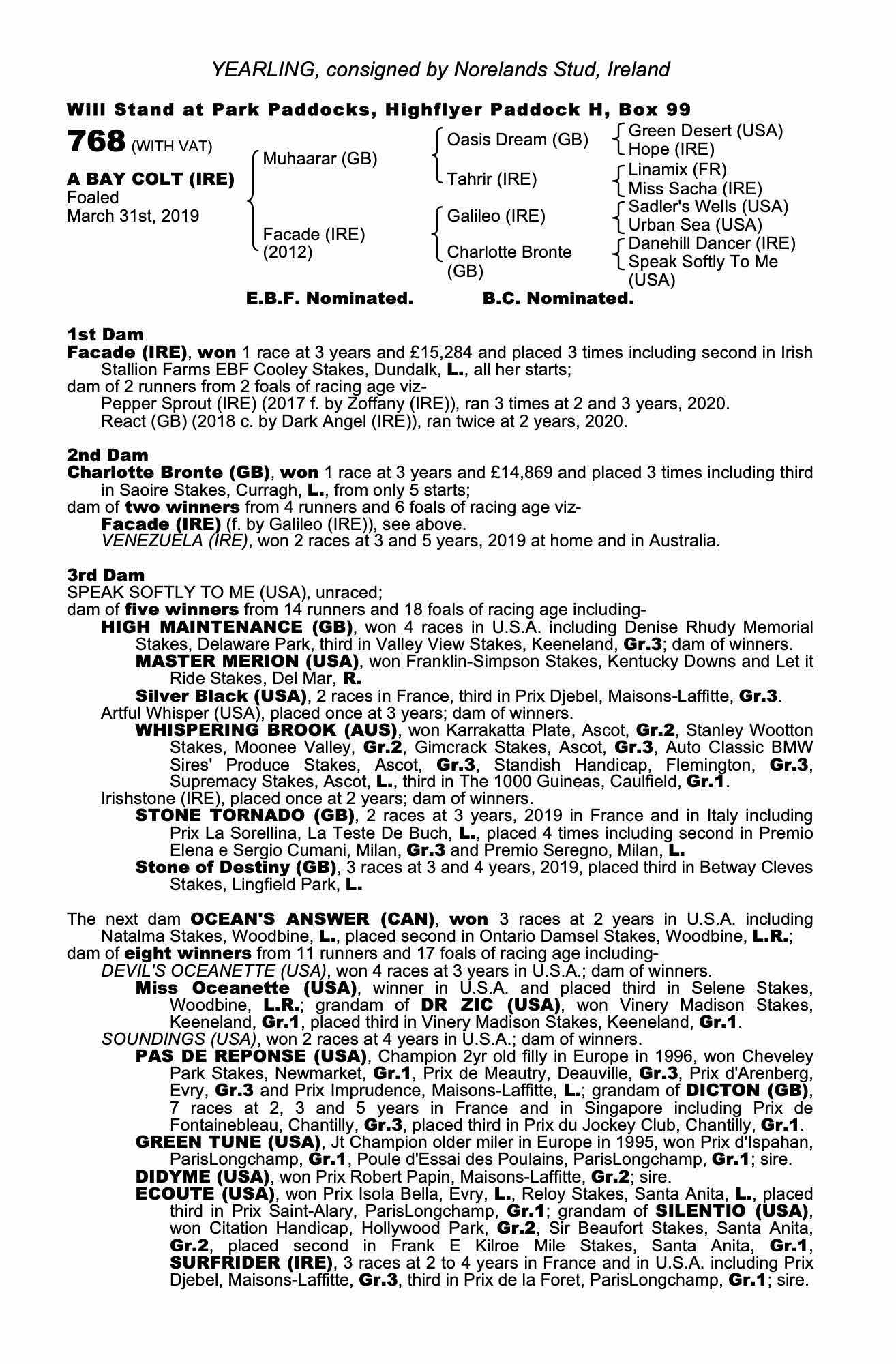 Consignor: Norelands Stud, Ireland
