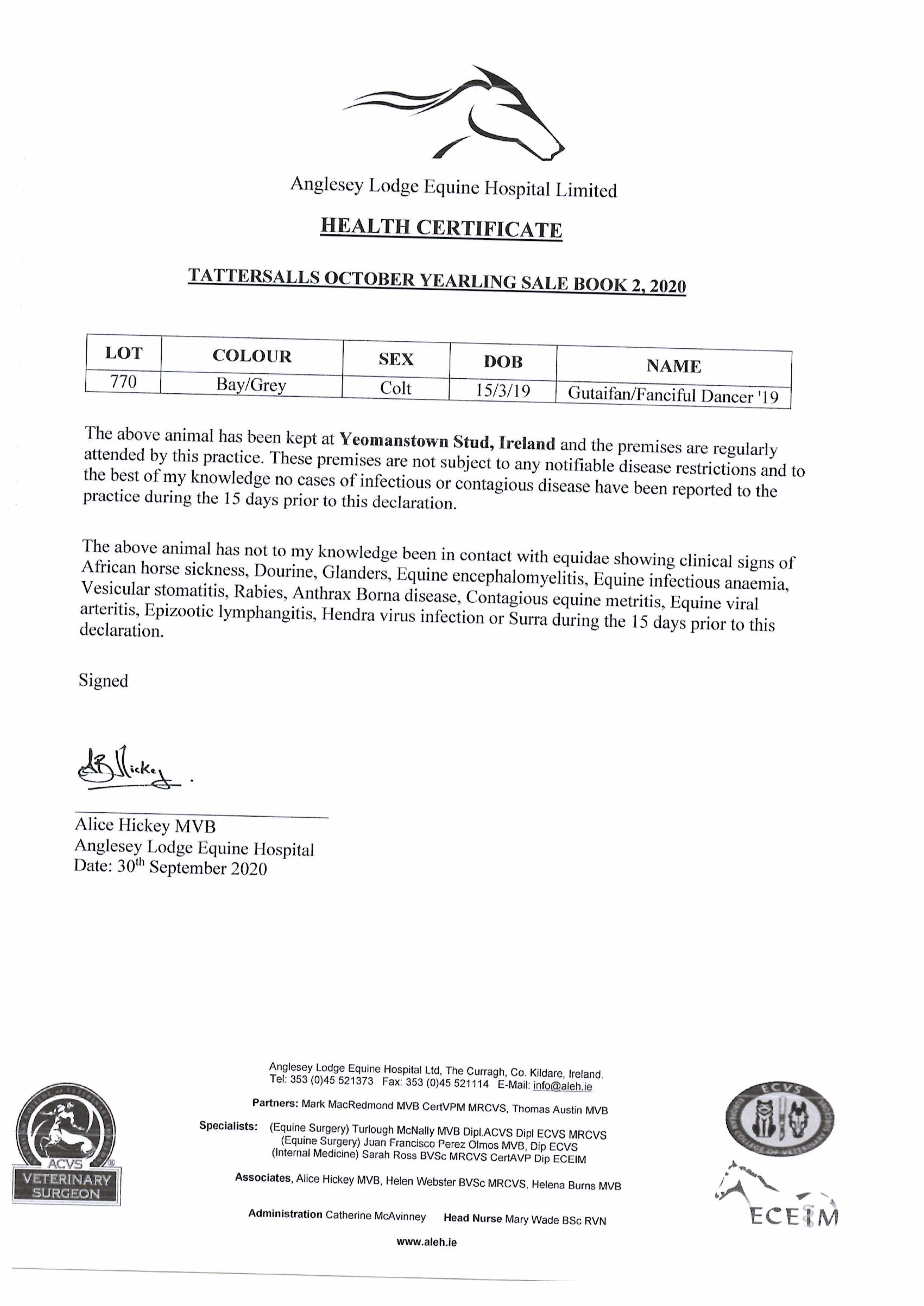 Consignor: Yeomanstown Stud, Ireland