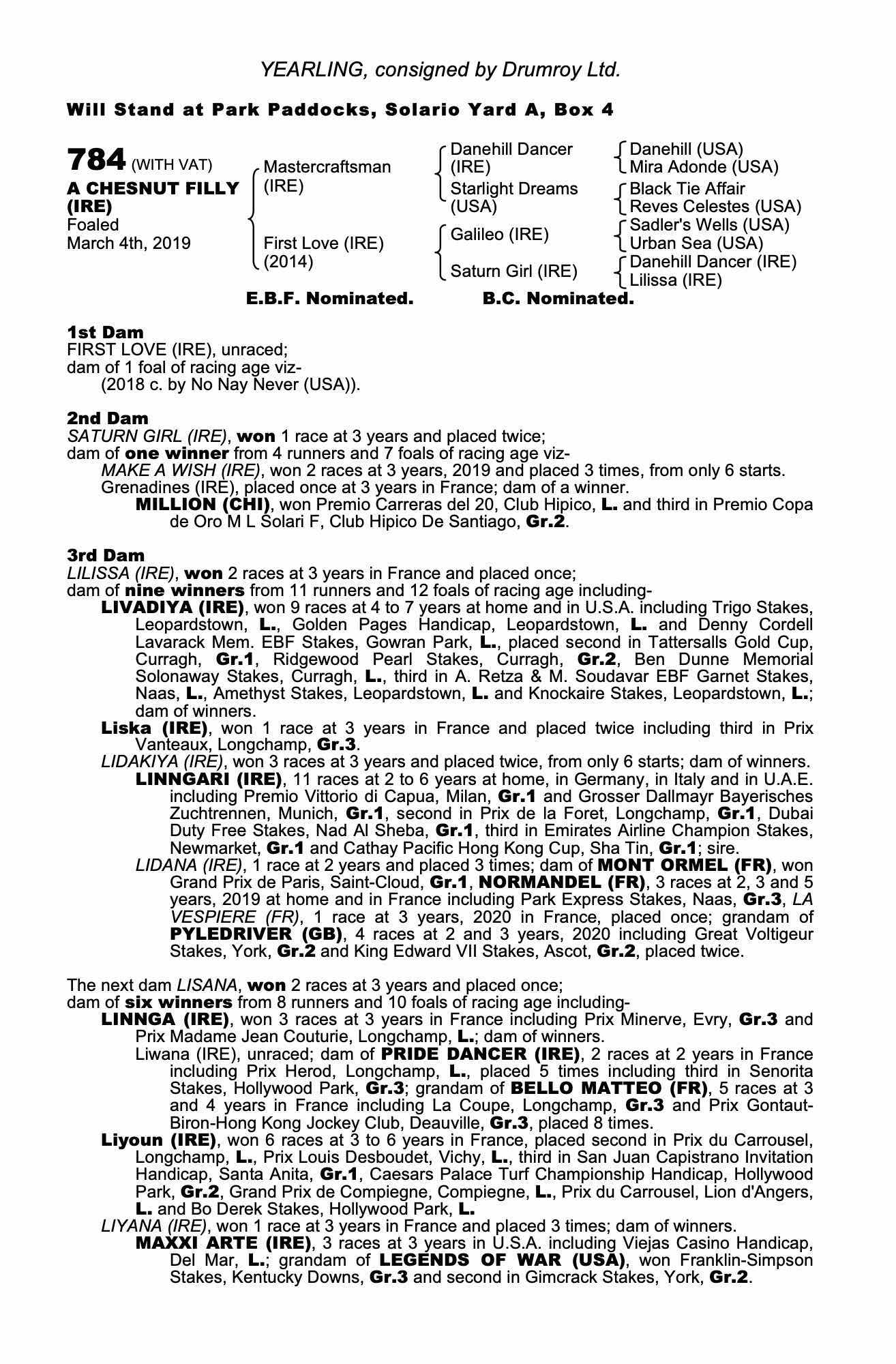 Lot 784 Mastercraftsman (IRE) /First Love (IRE) Ch.F. (IRE)