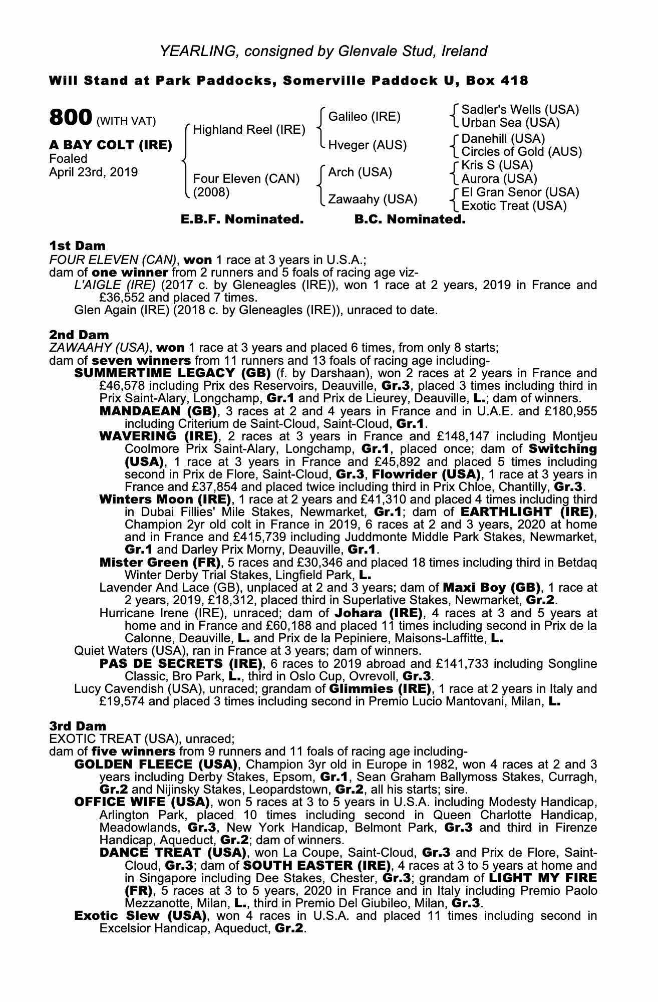 Consignor: Glenvale Stud, Ireland