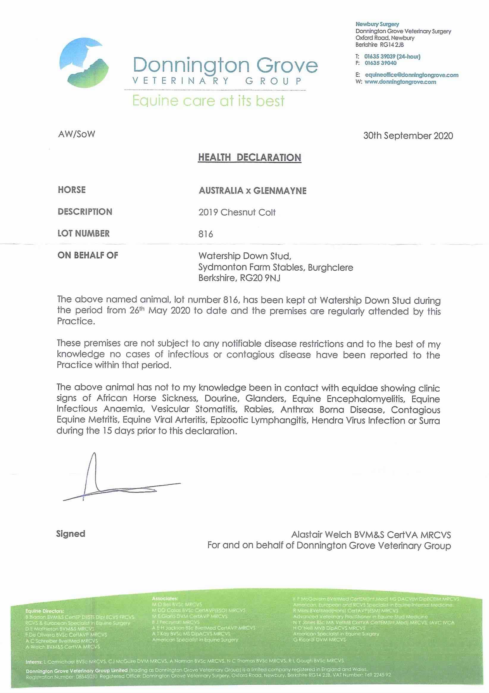 Consignor: Watership Down Stud