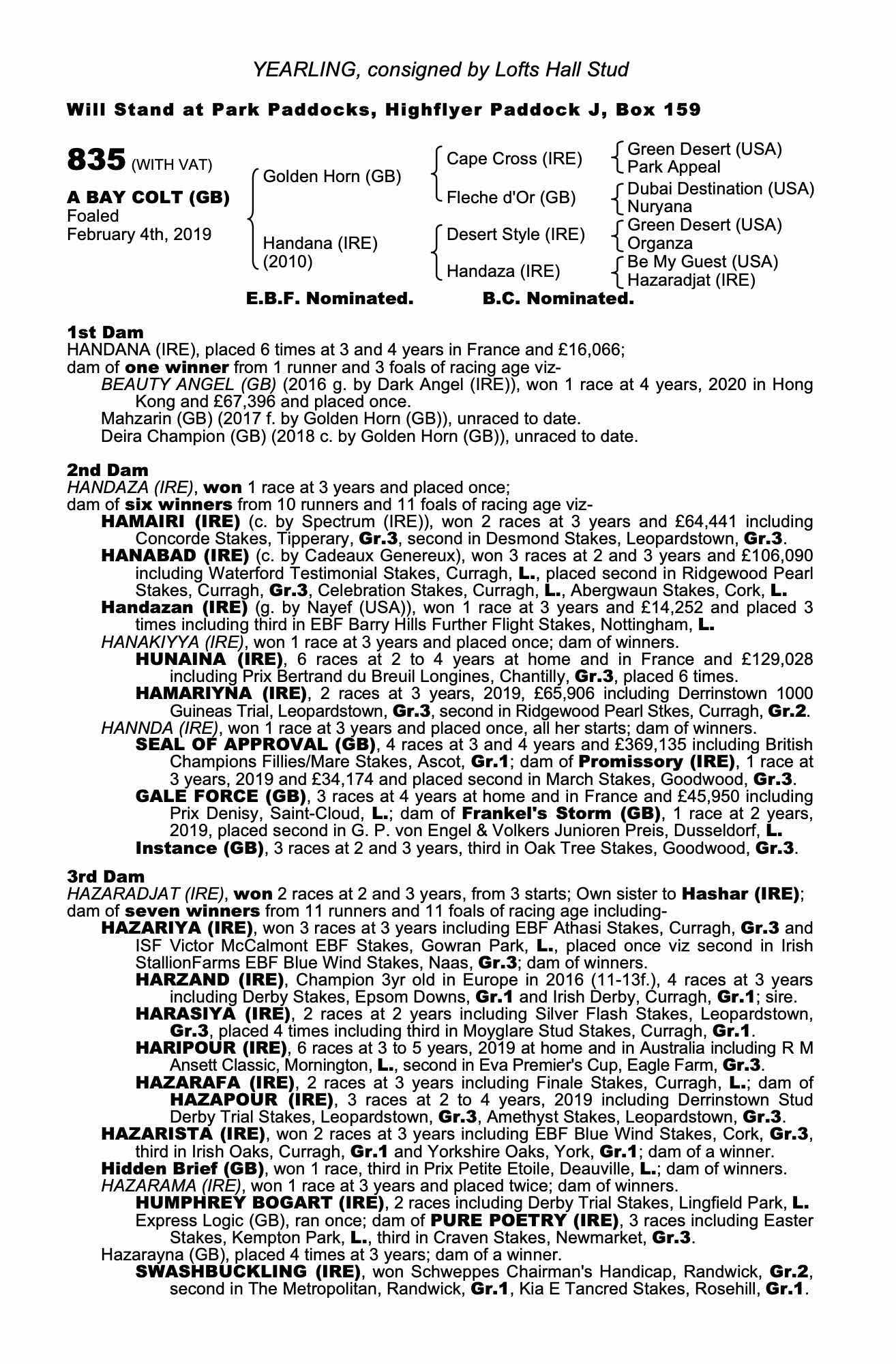 Consignor: Lofts Hall Stud