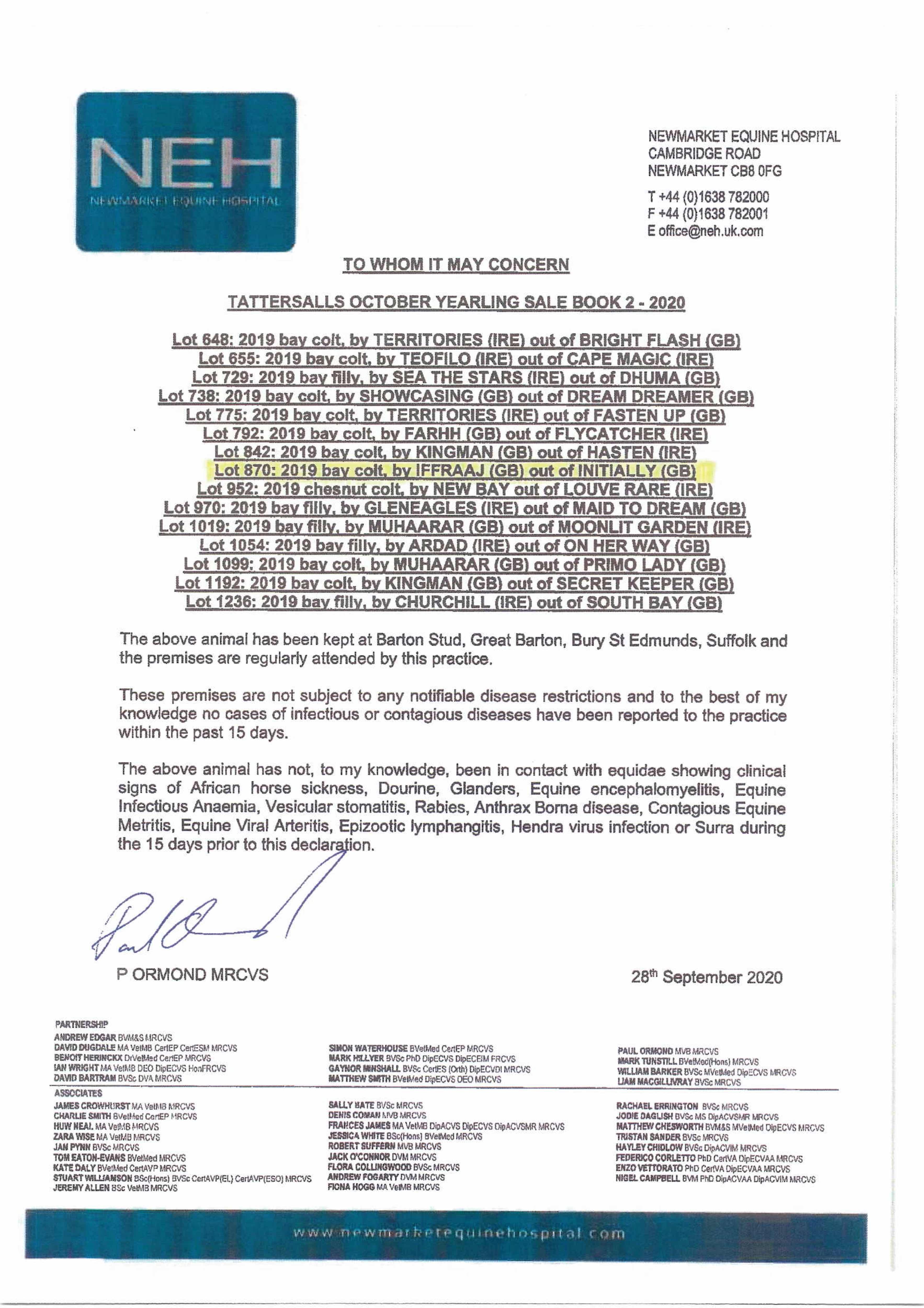 October Yearling Sale, Book 1 2019 lot 350 C. by Acclamation (GB) 2018, Jamie Railton (Agent)=>Mike Ryan Agent For Klaravich Stables 140,000 gns