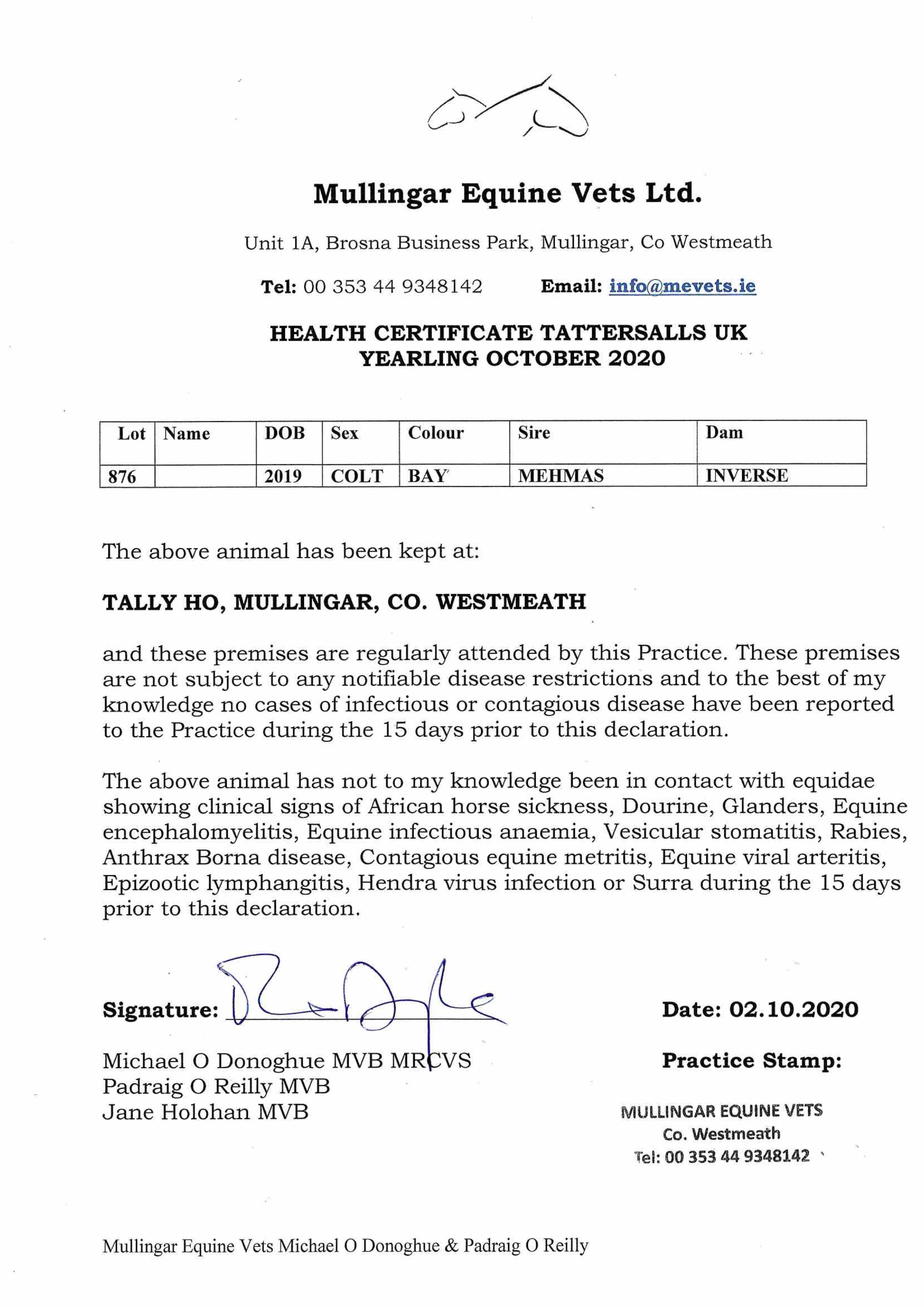 Consignor: Tally-Ho Stud, Ireland