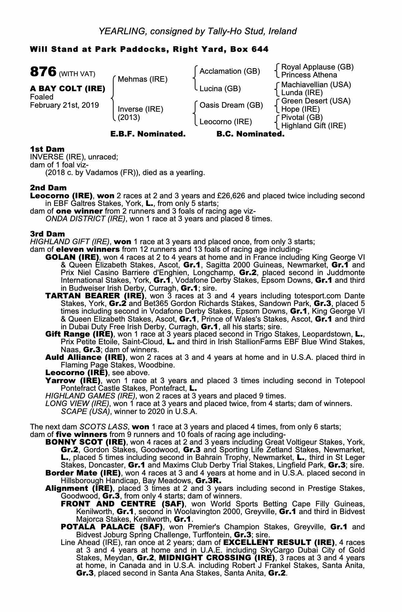 July Sale 2024 lot 513, Musley Bank Stables (R. Fahey)=>Scott Dixon Racing 5,500 gns