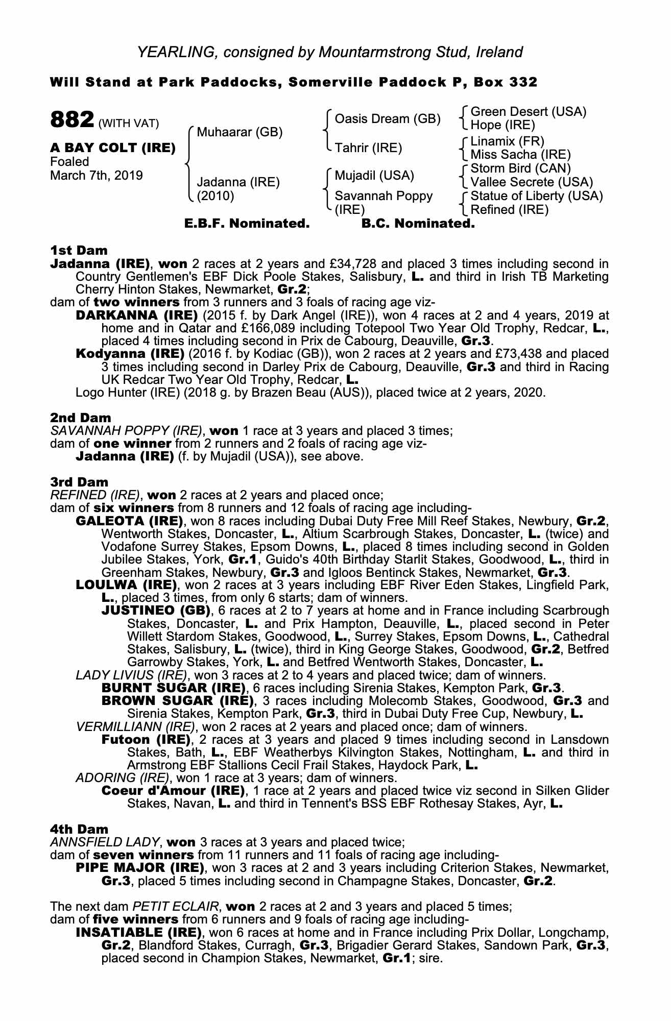 Consignor: Mountarmstrong Stud, Ireland