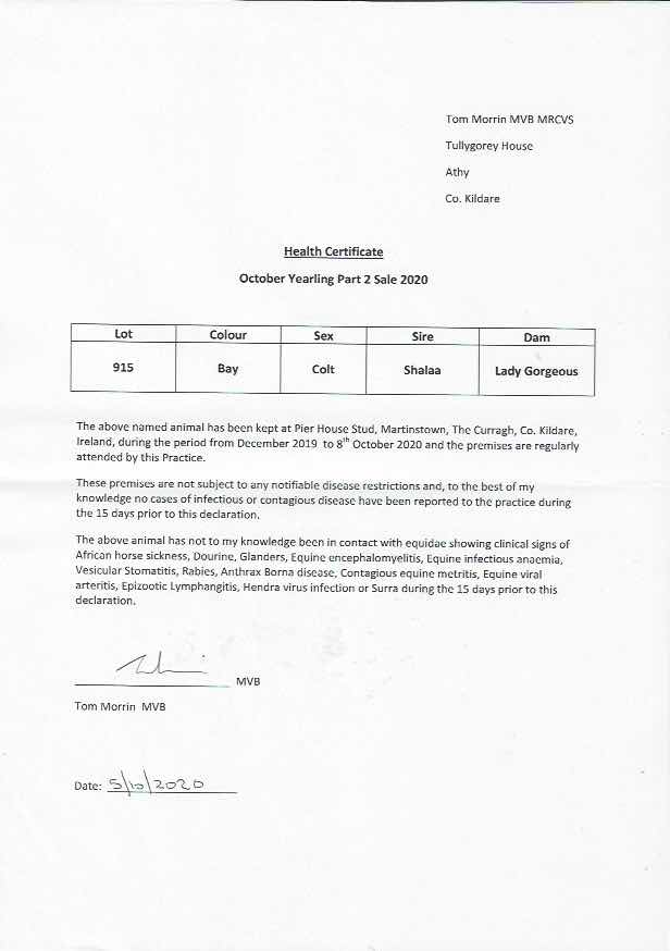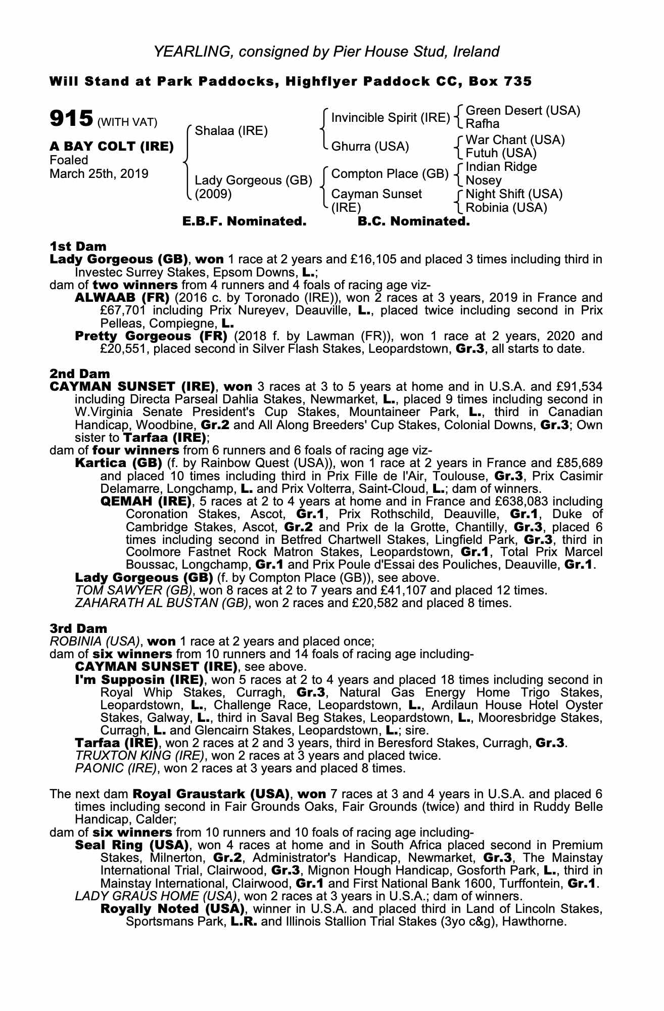 Consignor: Pier House Stud, Ireland