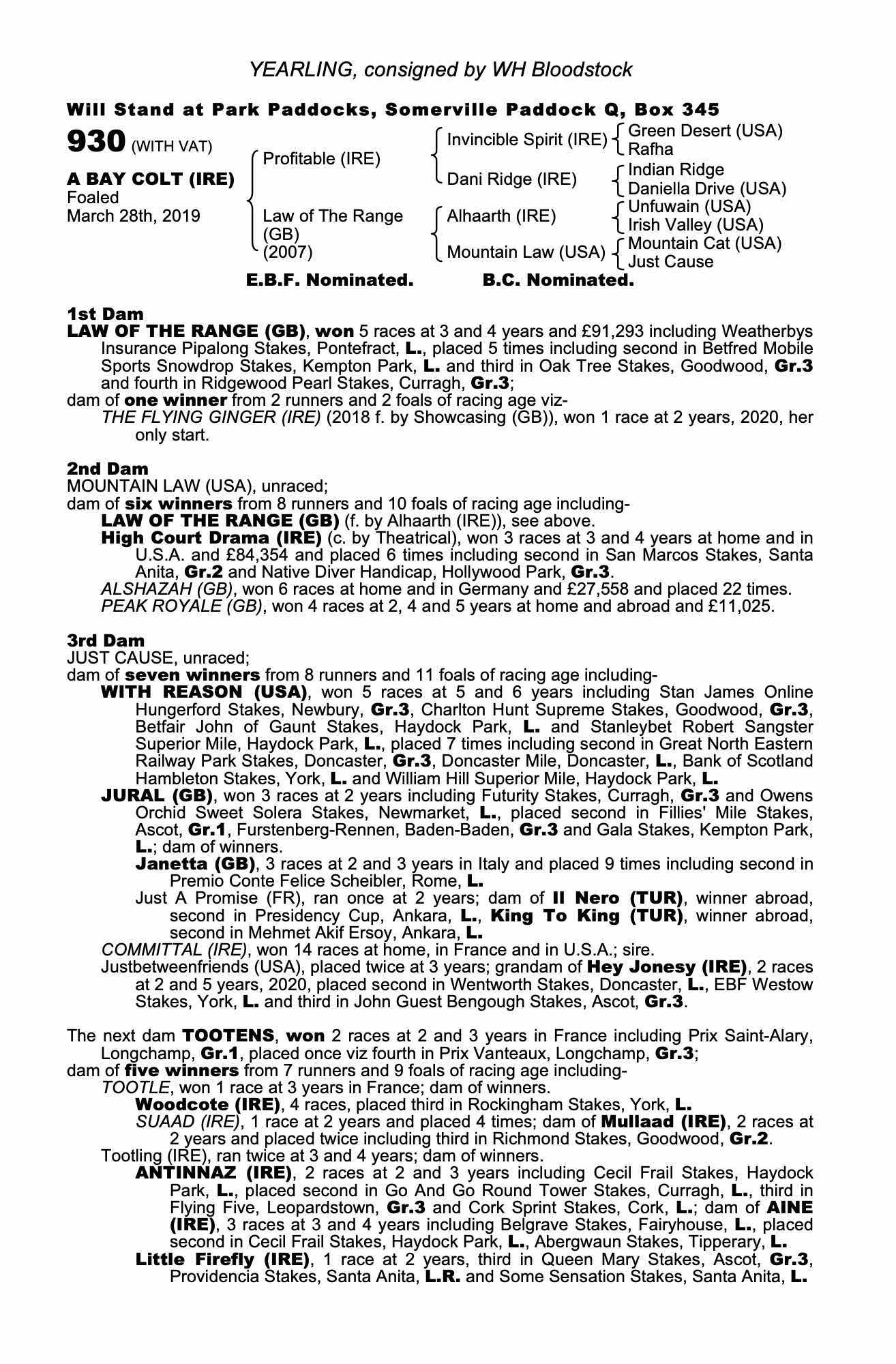 Consignor: WH Bloodstock
