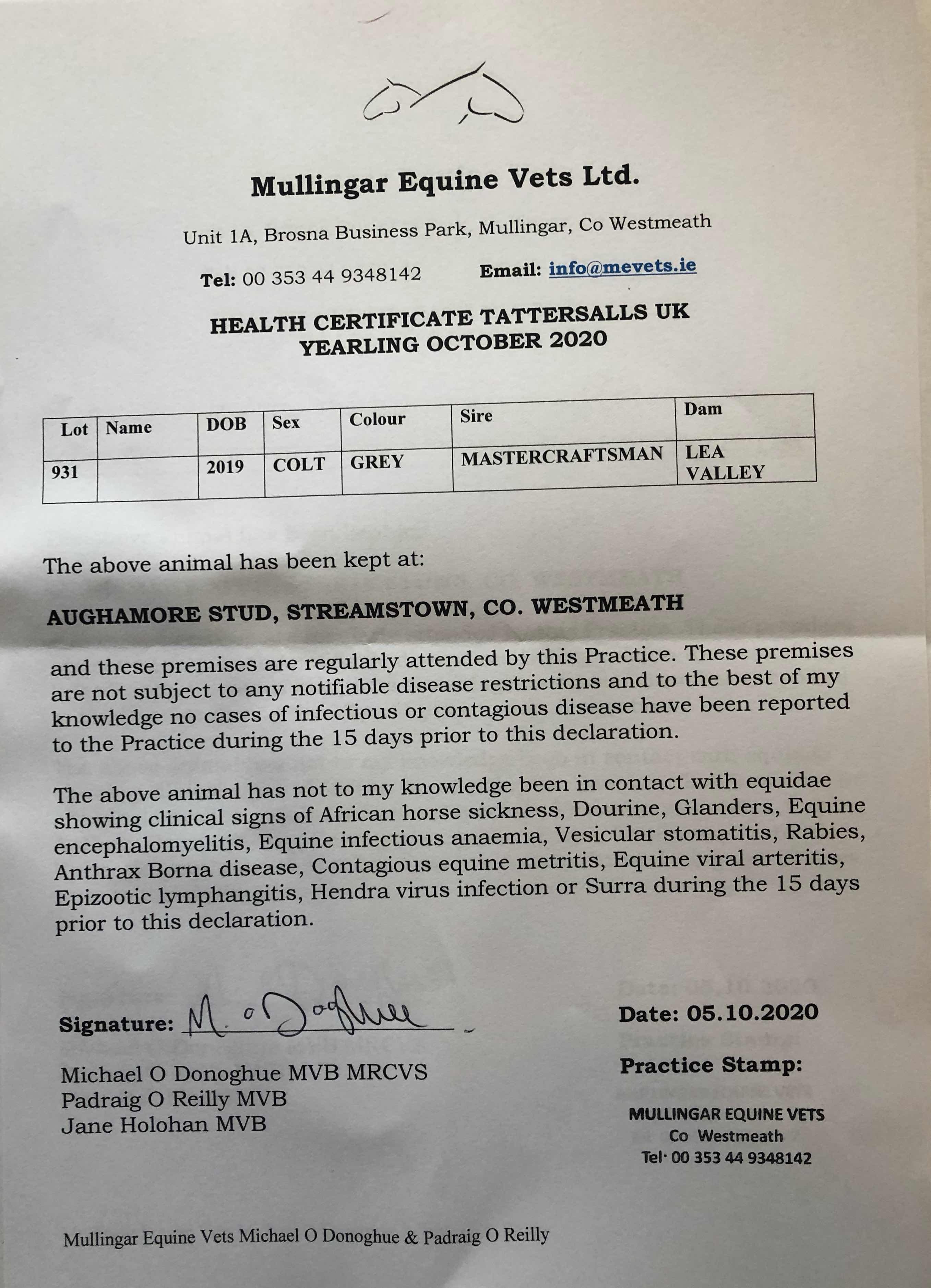 Consignor: Aughamore Stud, Ireland