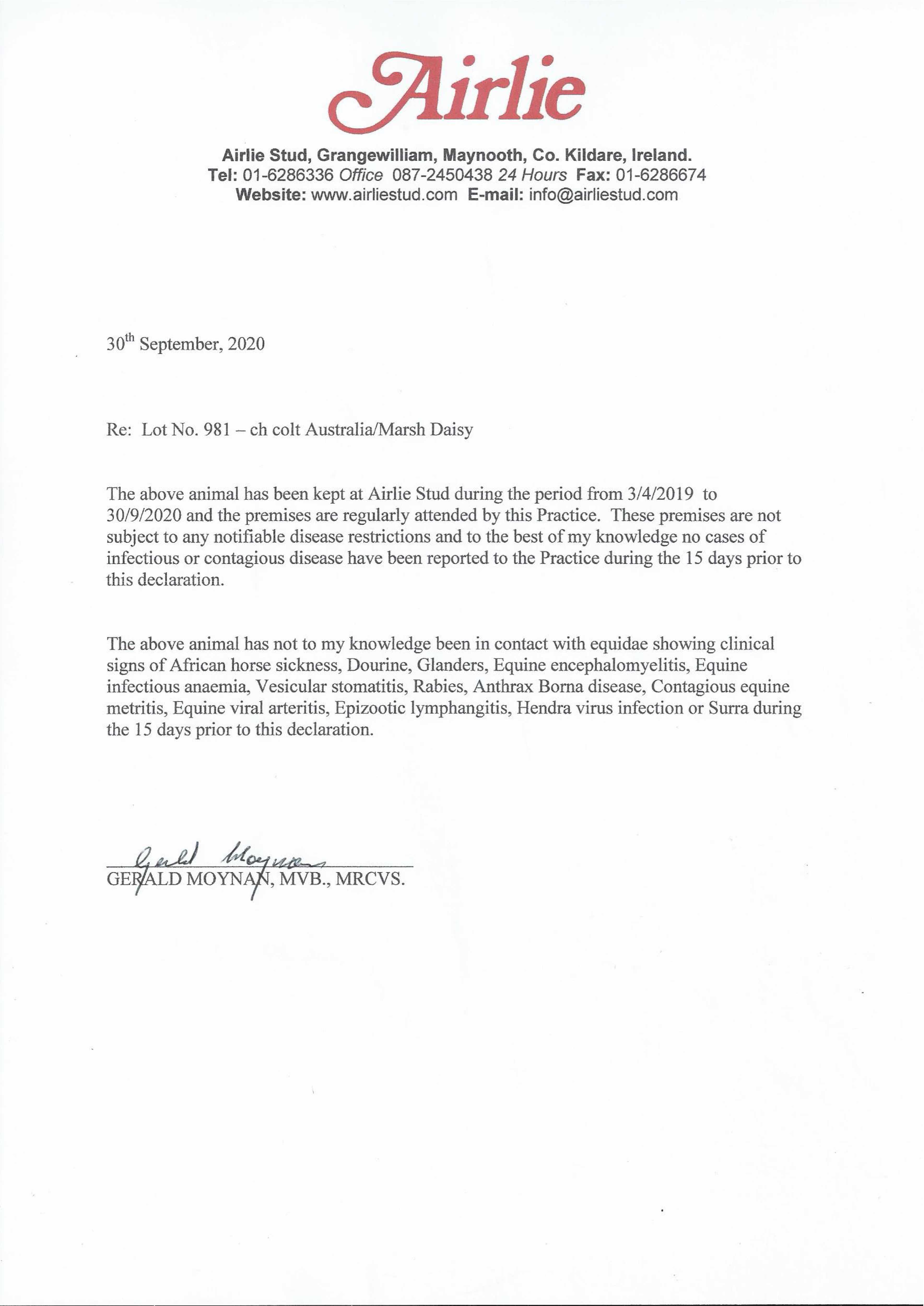 Consignor: Airlie Stud, Ireland