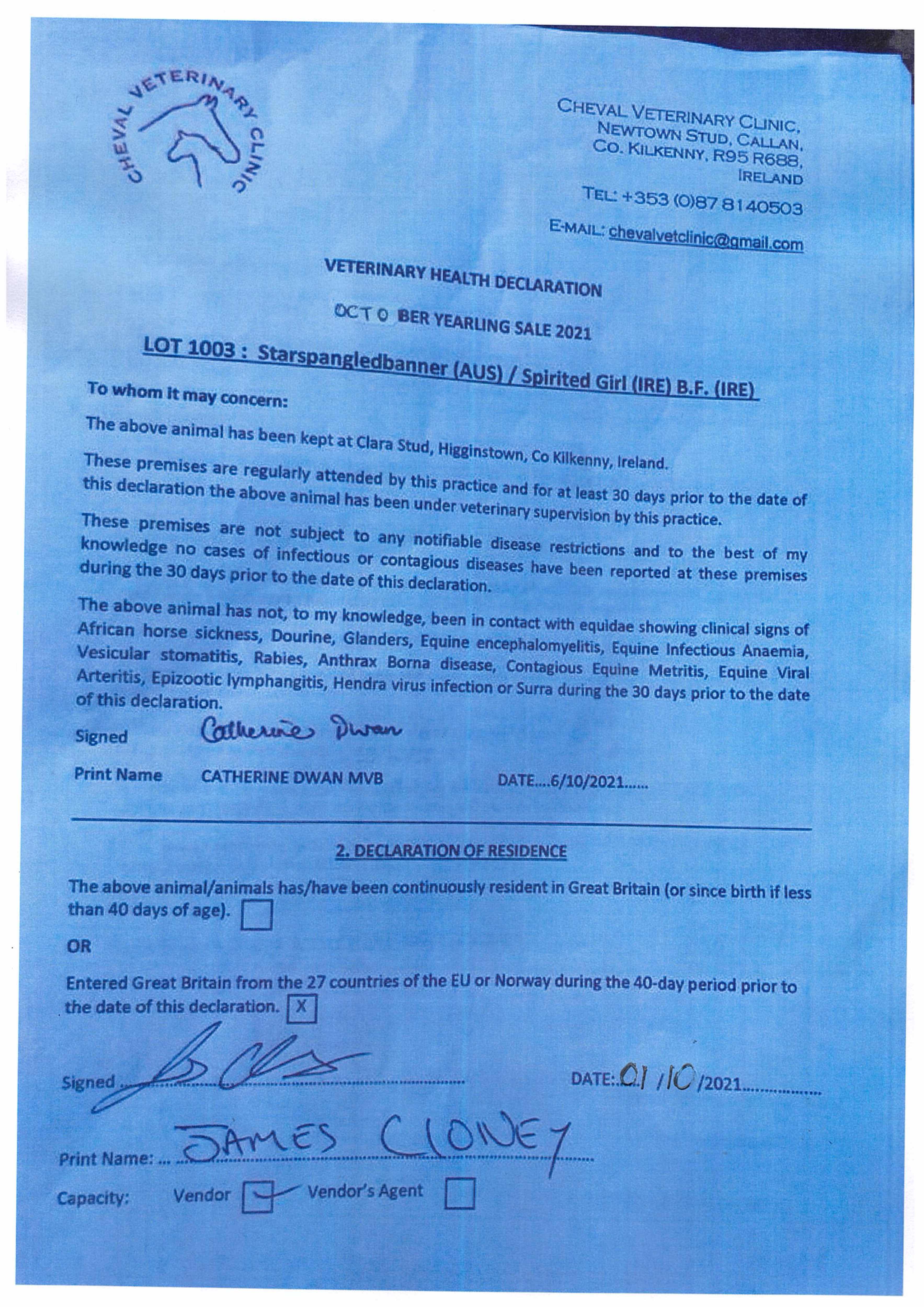 December Foal Sale 2022 lot 619 F. by Churchill (IRE) 2022, Clara Stud, Ireland=>Ron Hull 16,000 gns