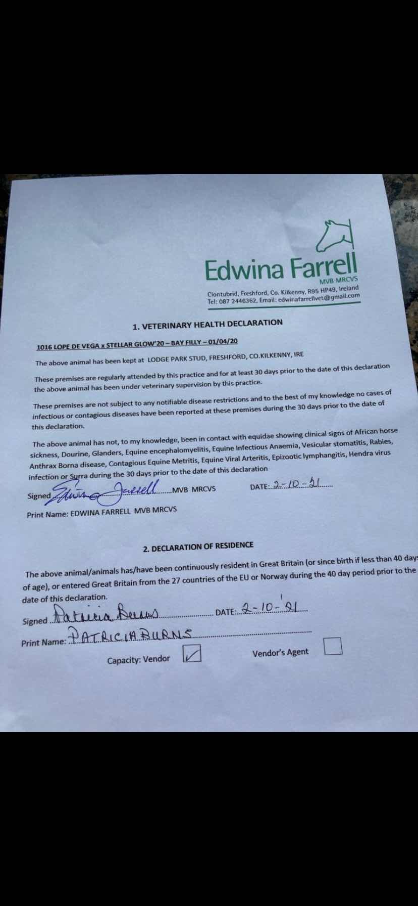 Consignor: Lodge Park Stud, Ireland