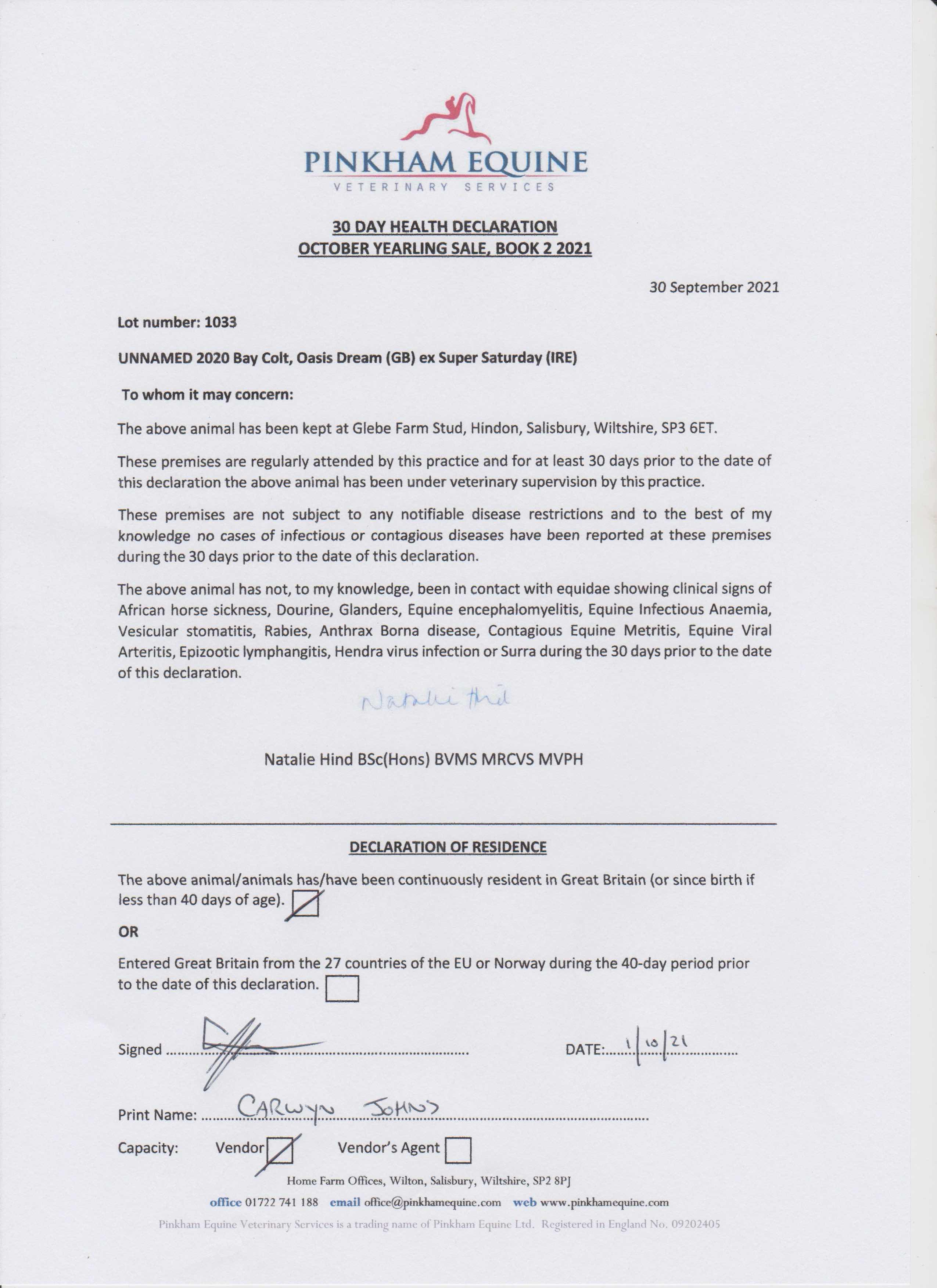 Consignor: Glebe Farm Stud