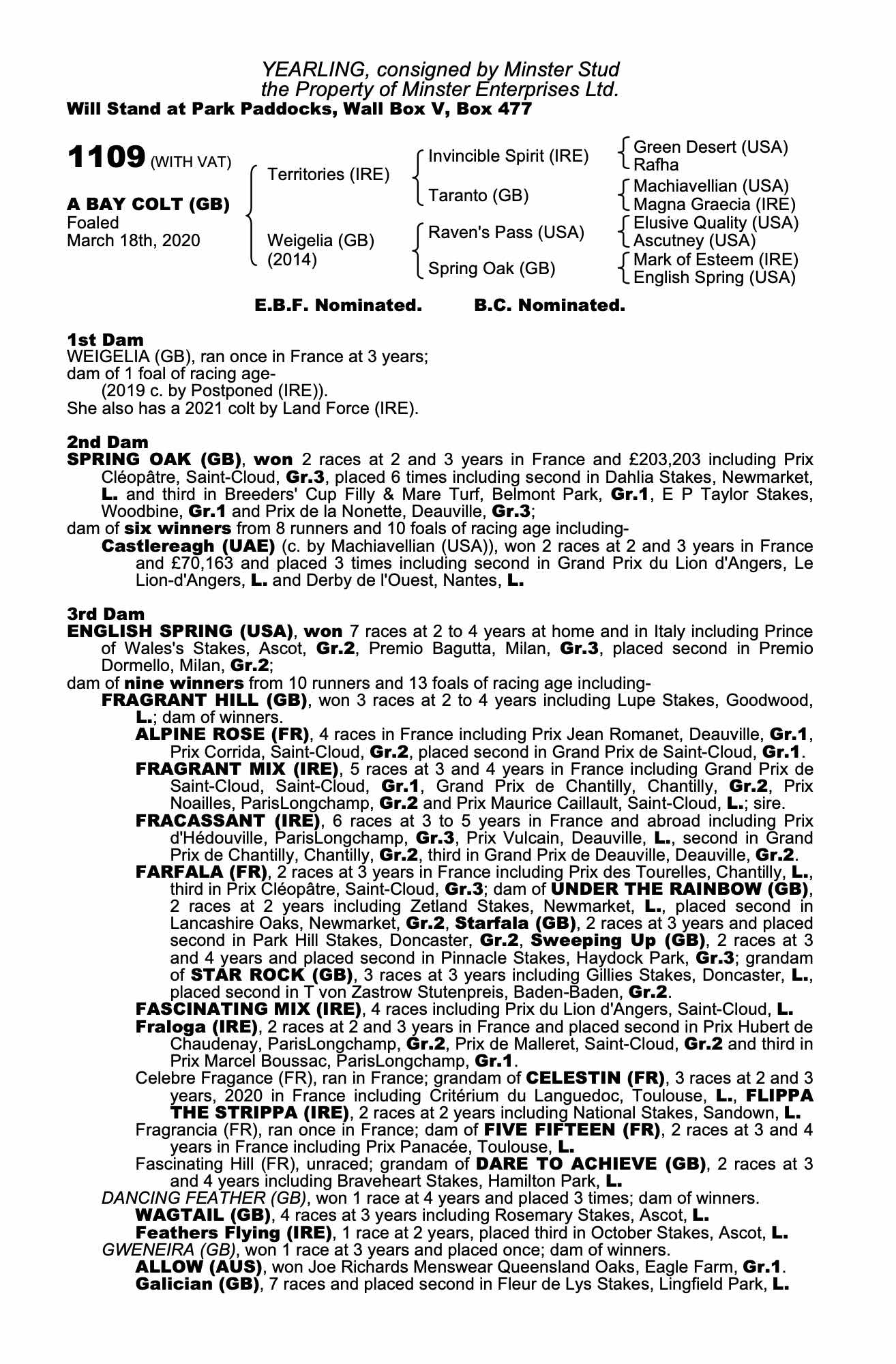 Contact: Mr W H Carson ✆ 07503659506 ✉ info@minsterstud.co.uk