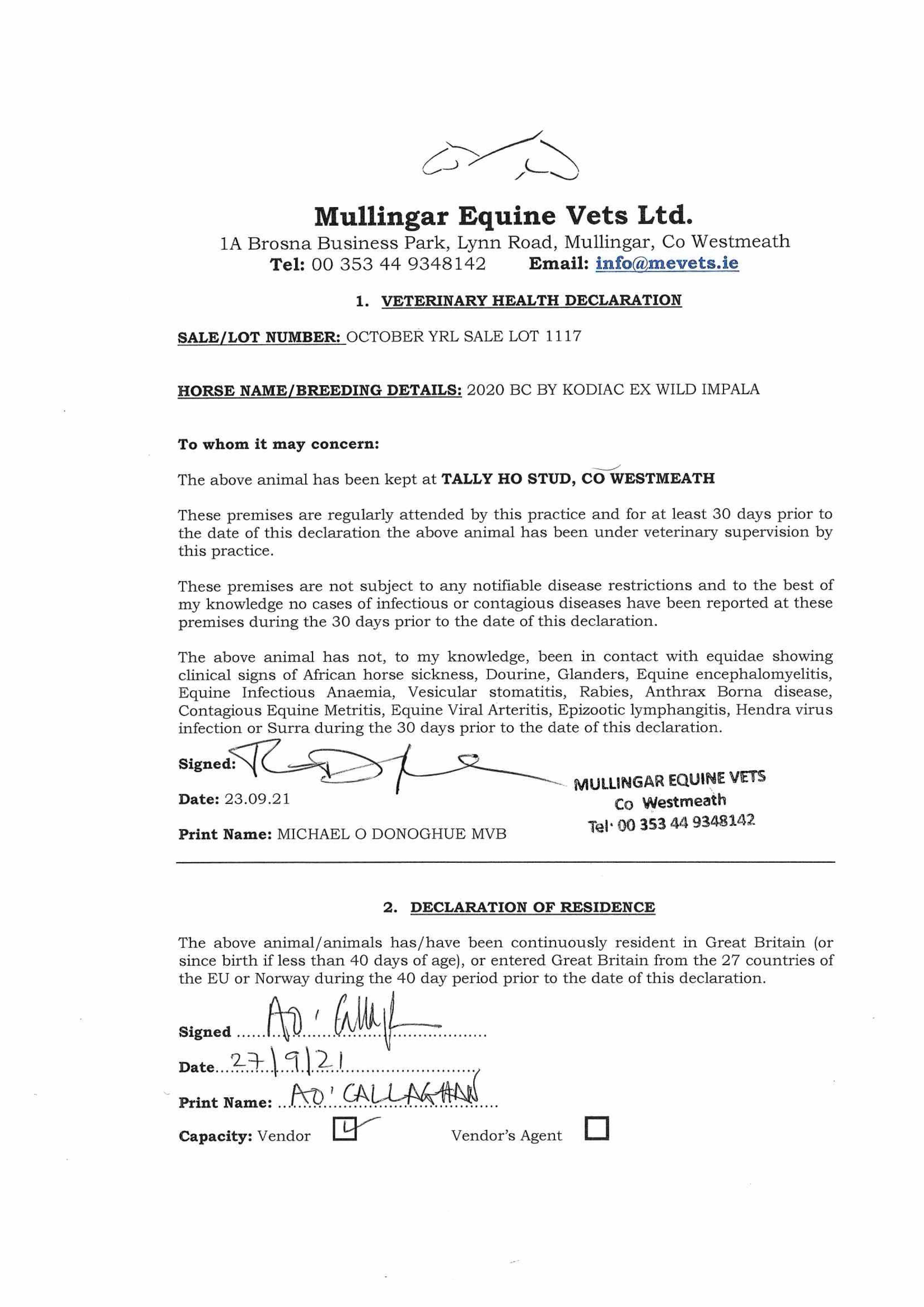 Consignor: Tally-Ho Stud, Ireland