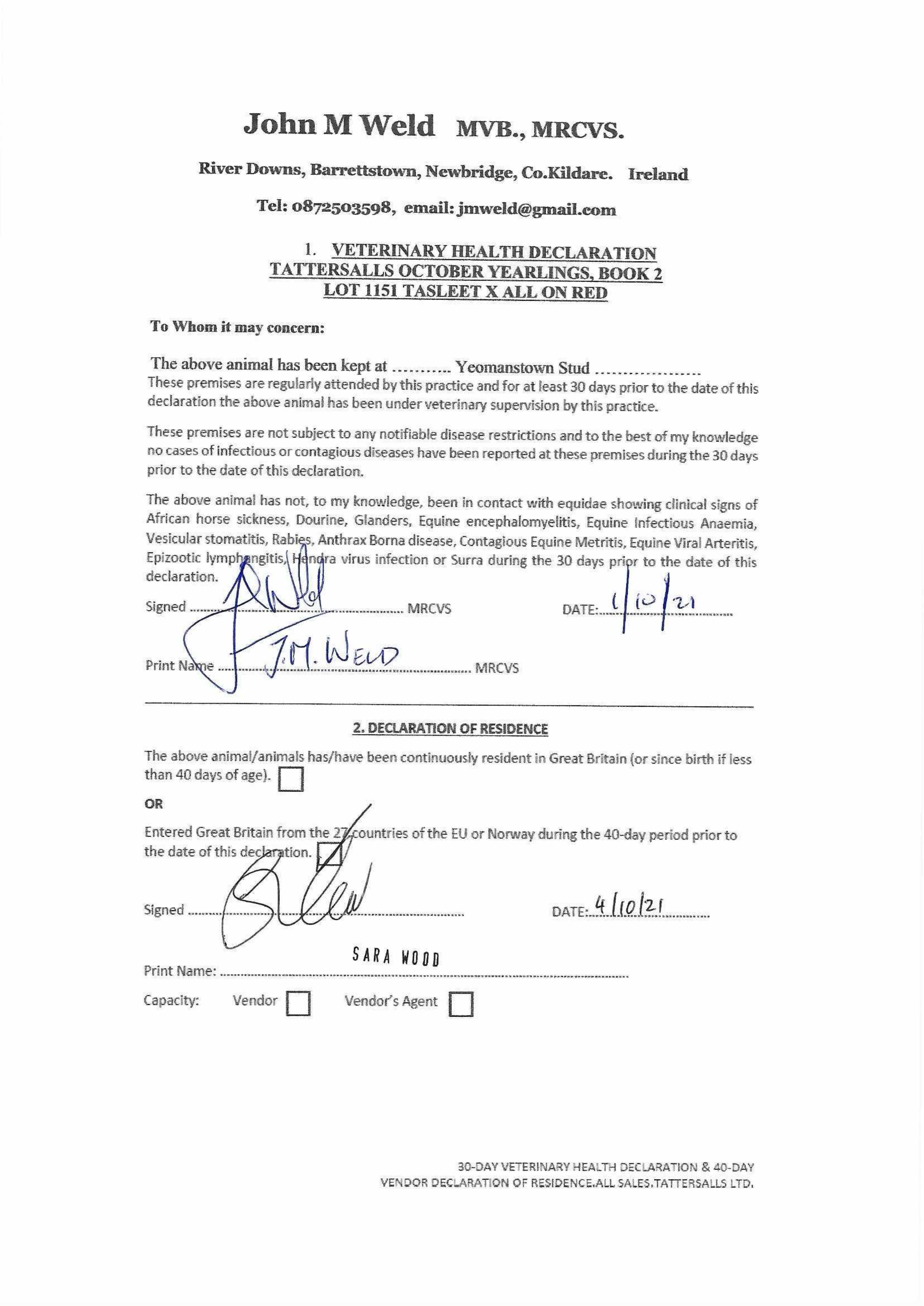 Consignor: Yeomanstown Stud, Ireland