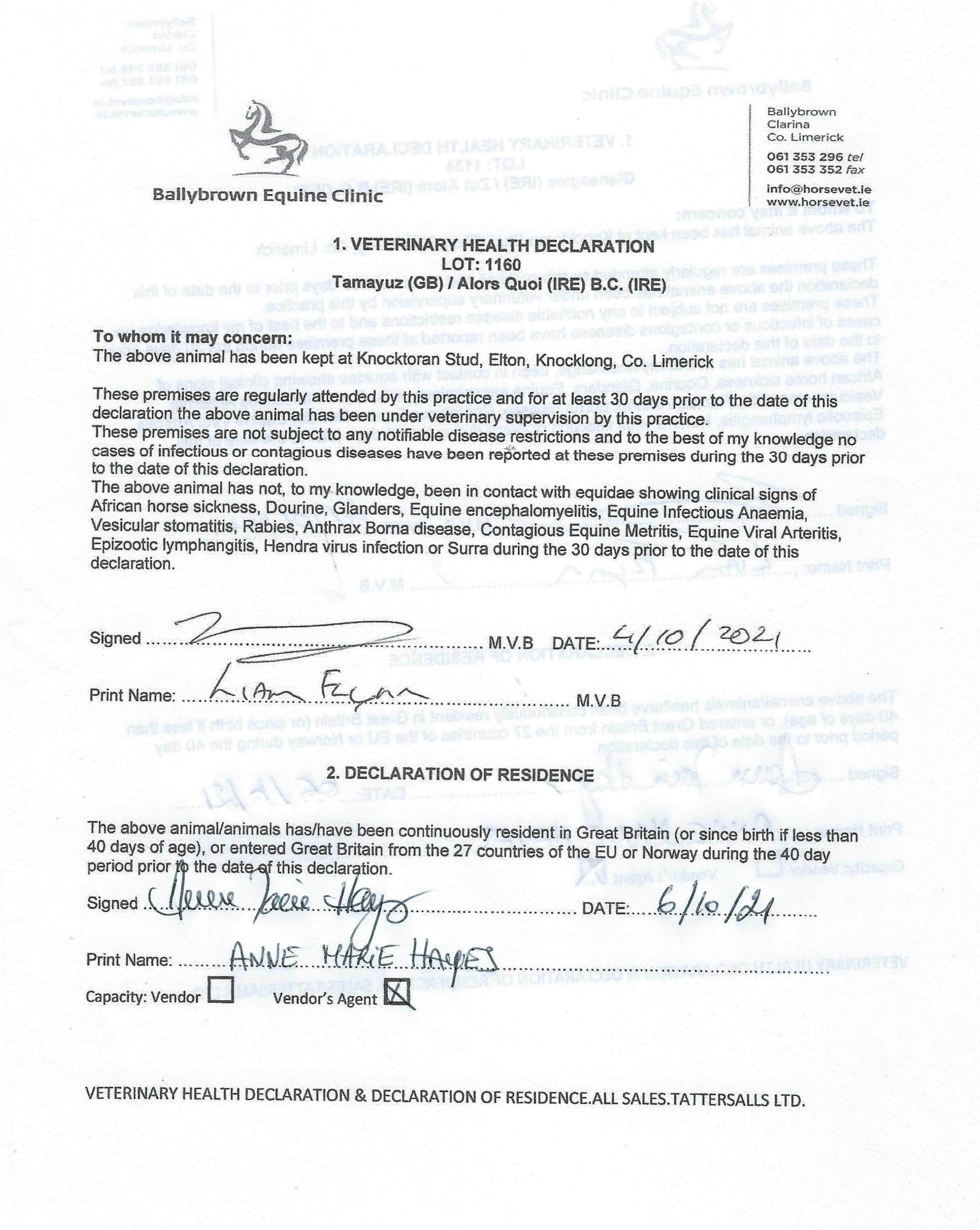 Contact: Brendan P Hayes ✆ +353872590533 ✉ knocktoran@gmail.com