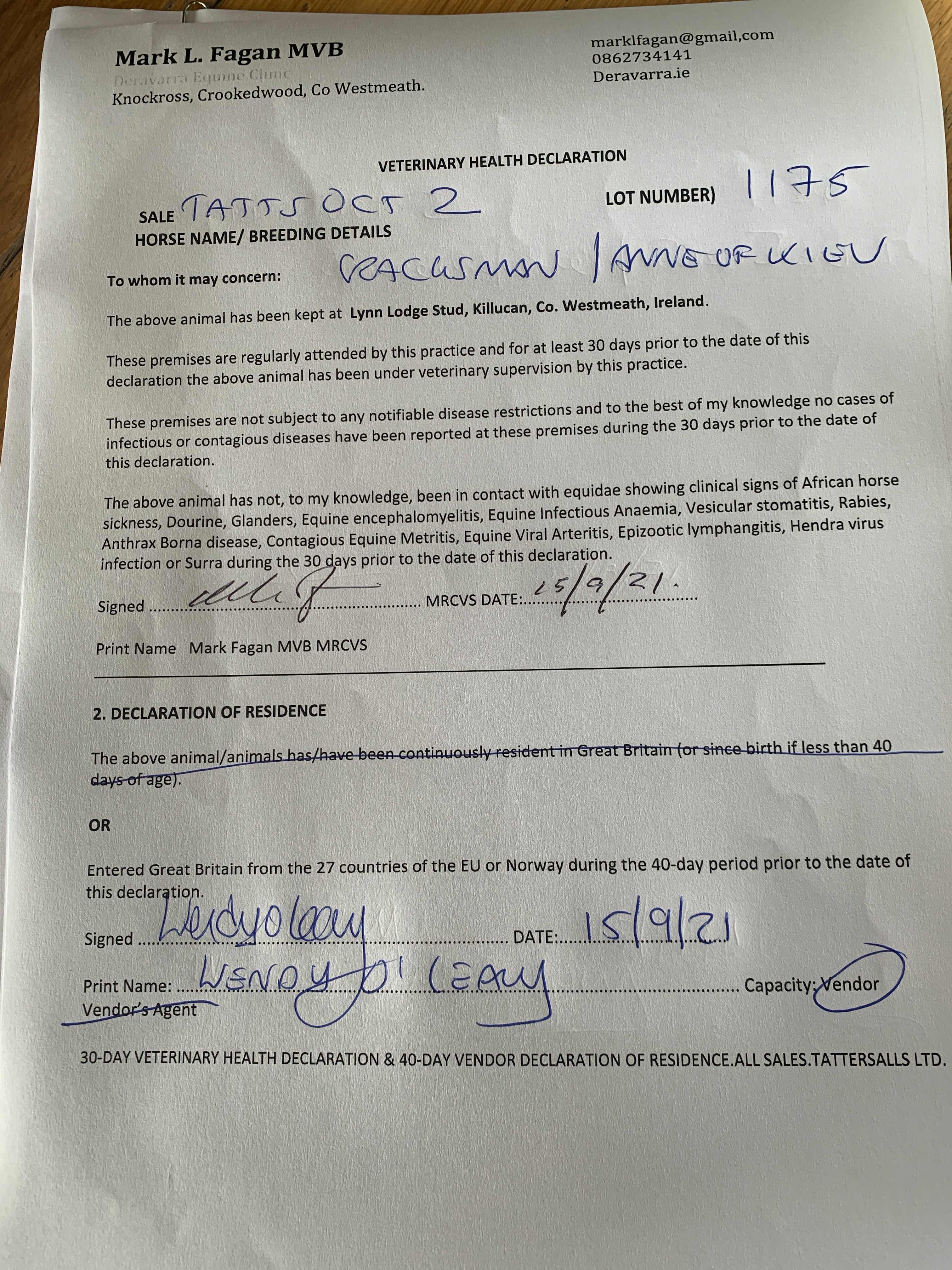 August Sale 2021 lot 275 Illies Memories (IRE) (F. by Hard Spun (USA)), Faringdon Place Stables (C. Hills)=>Lot Not Sold 9,000 gns