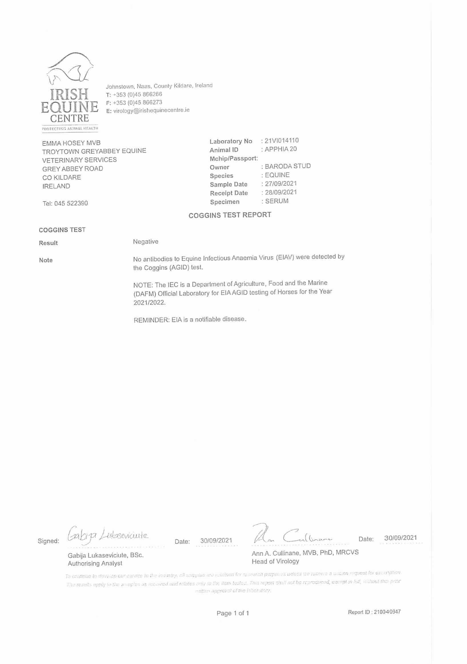 Consignor: Baroda Stud, Ireland