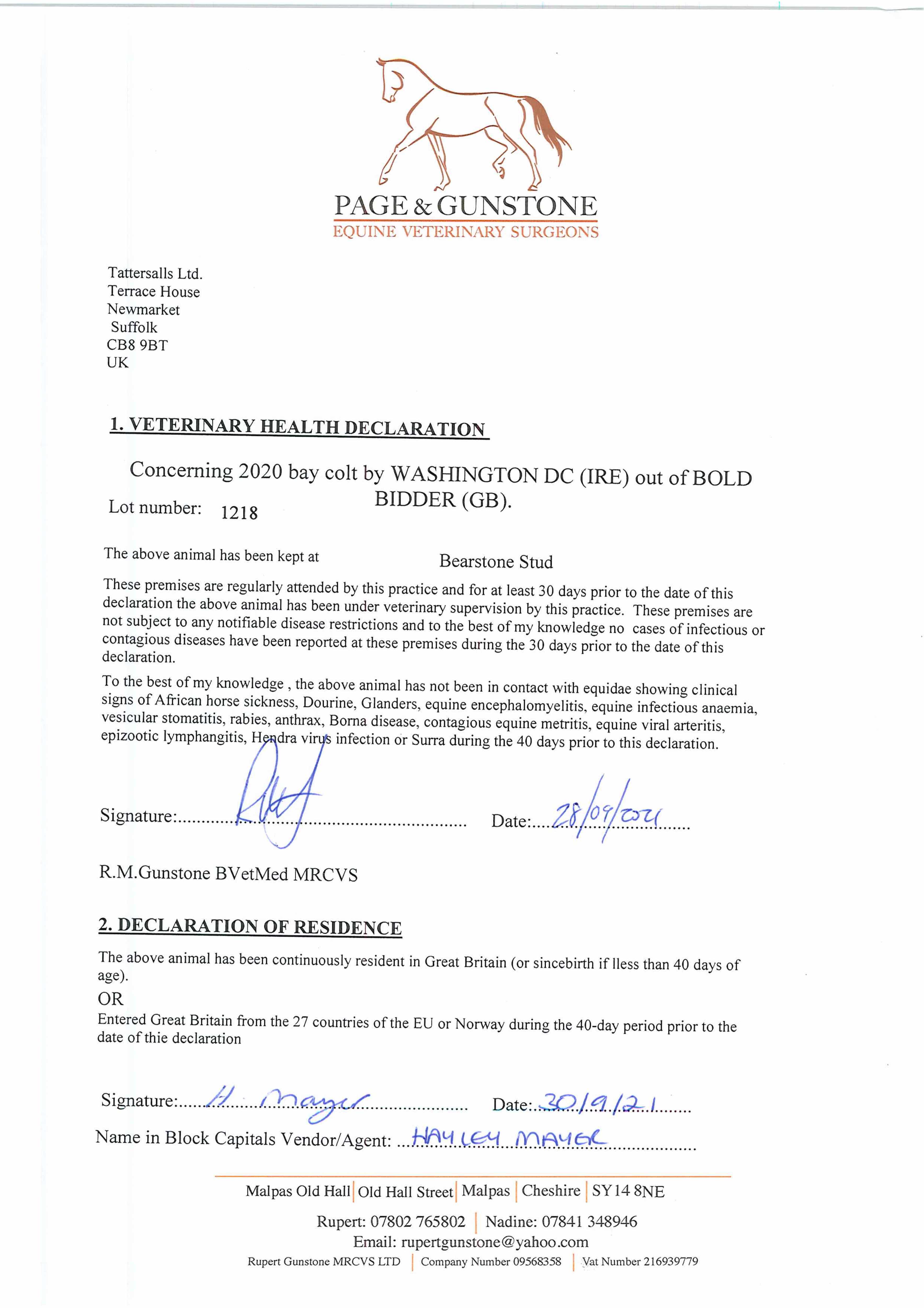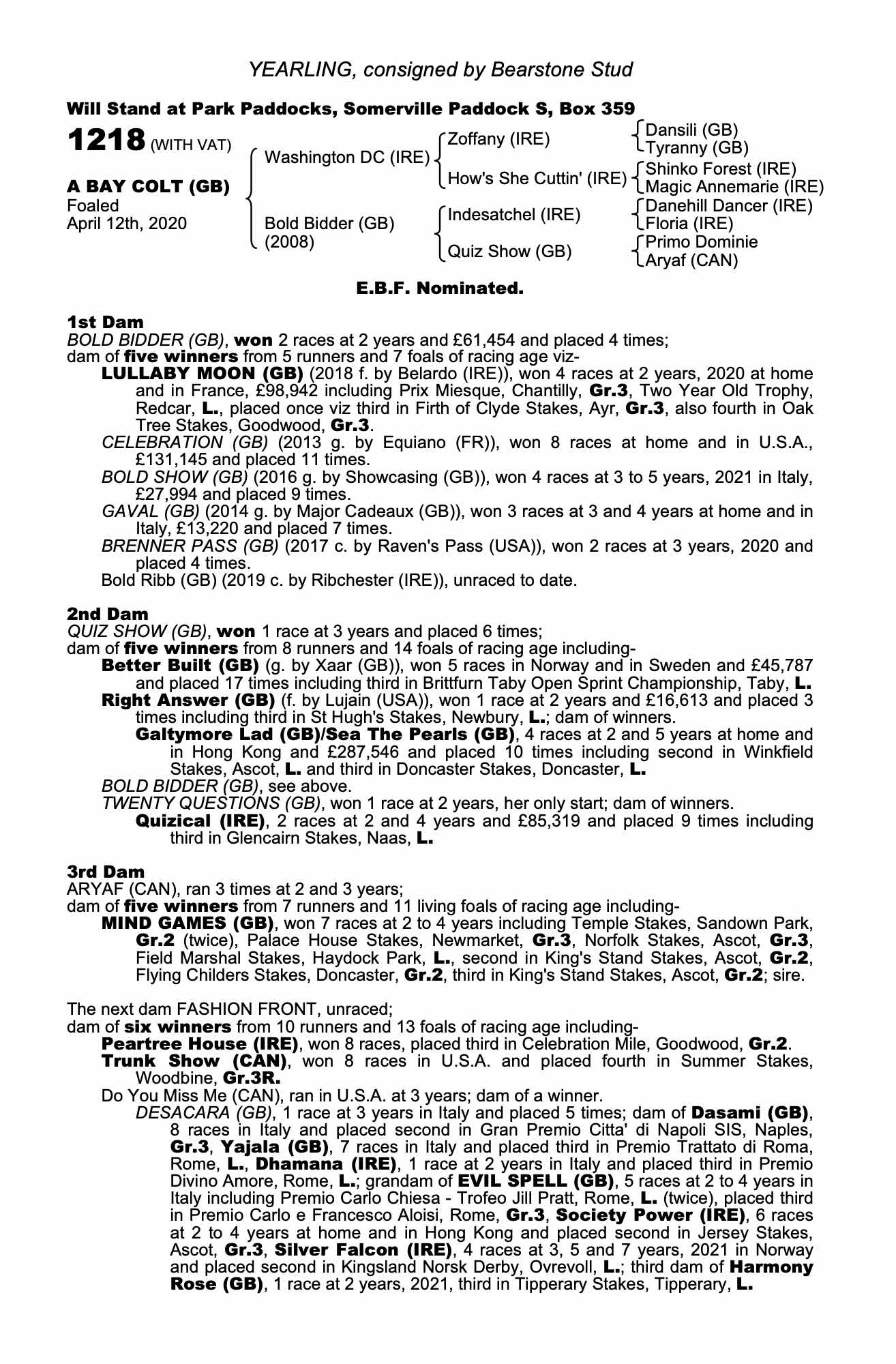 Consignor: Bearstone Stud