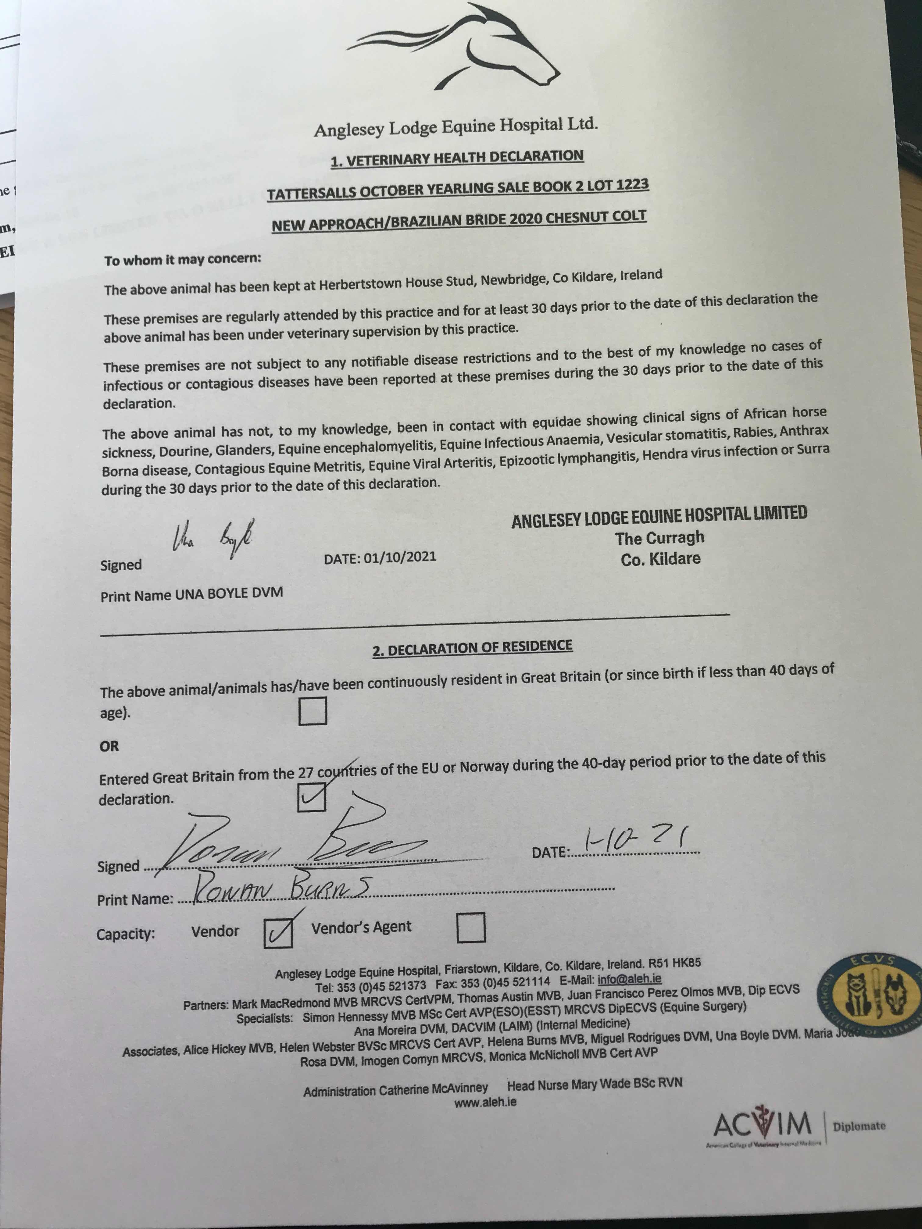 Consignor: Herbertstown House Stud (Co. Kildare), Ireland