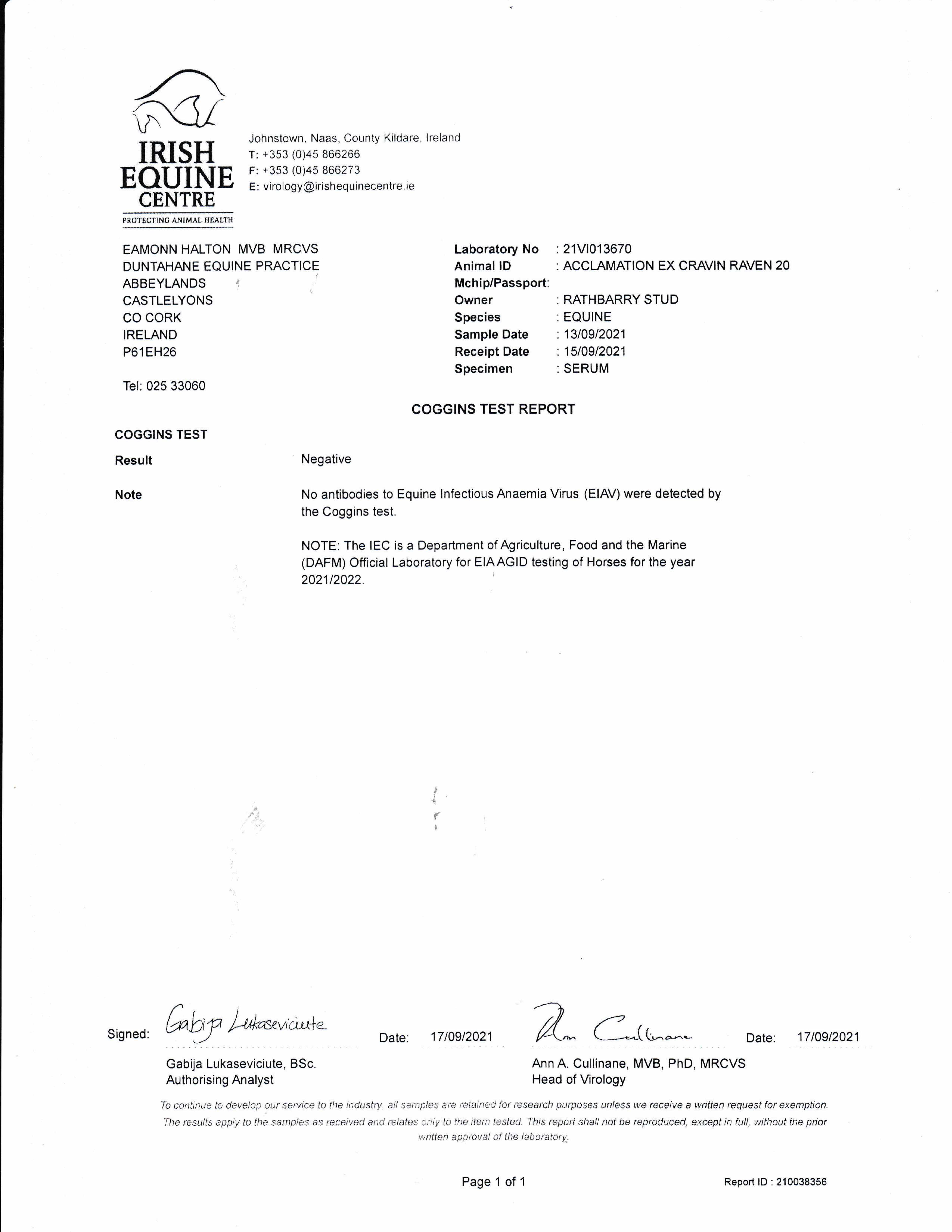 Consignor: Rathbarry Stud, Ireland