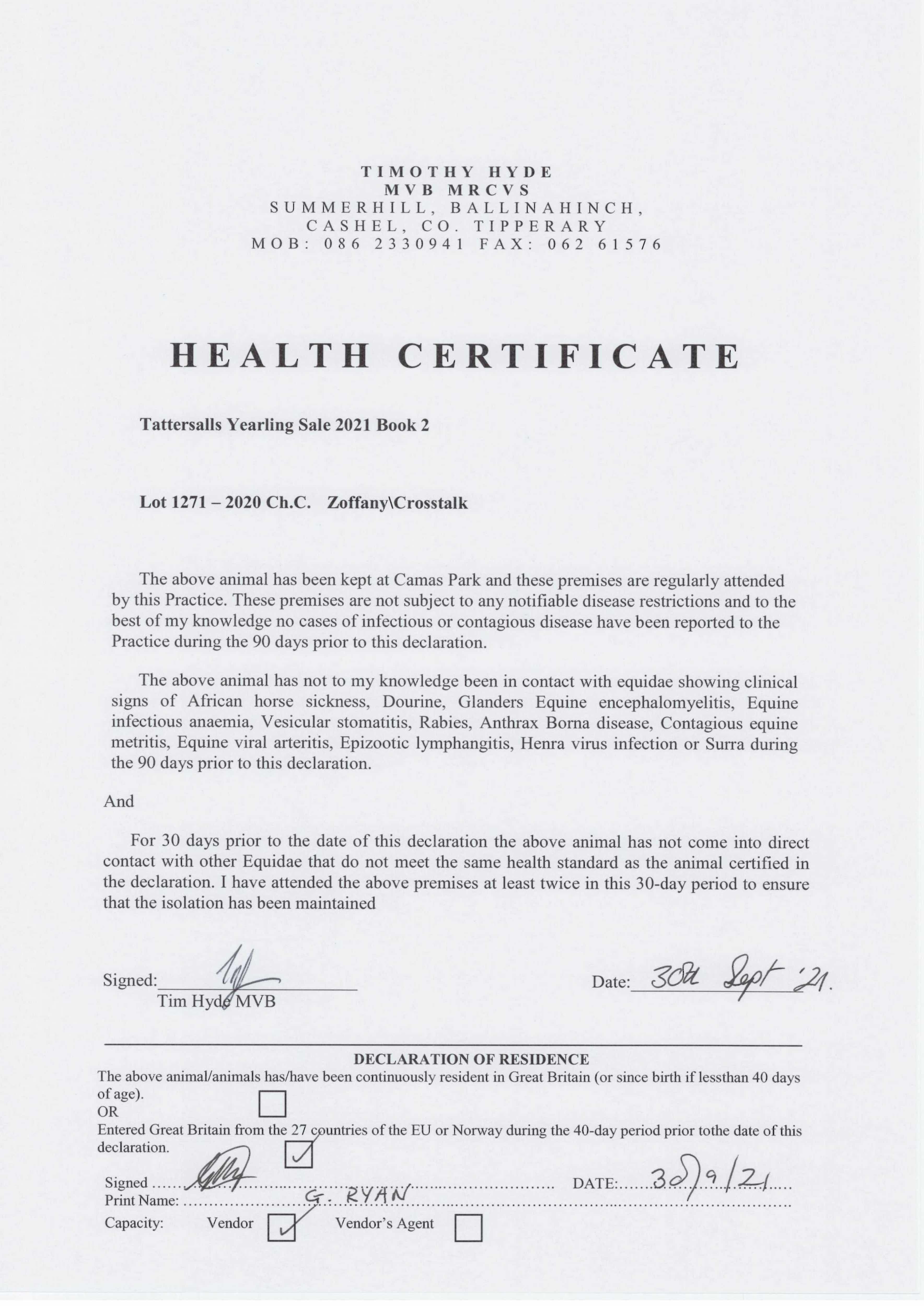 Consignor: Camas Park Stud, Ireland