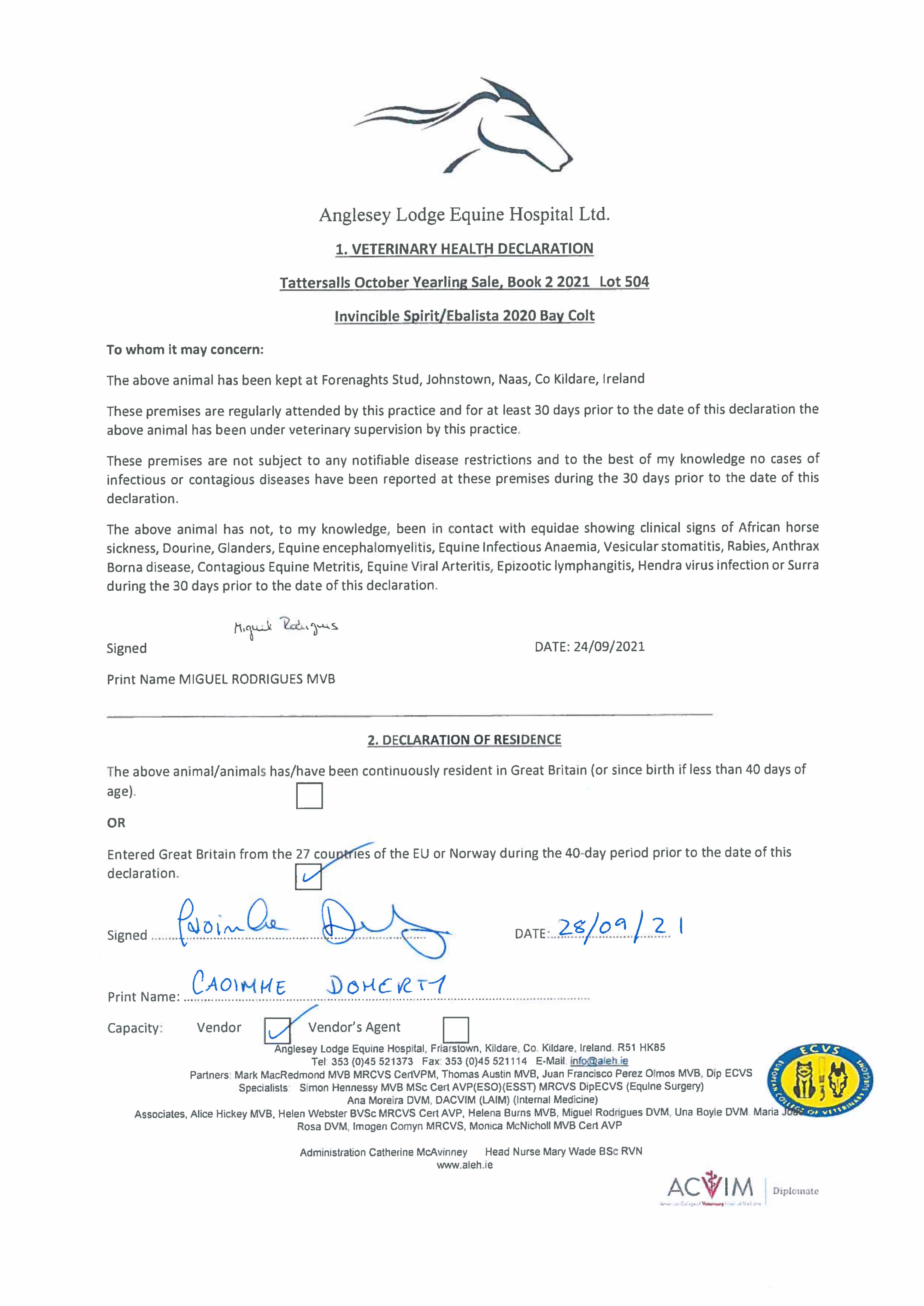 Consignor: Forenaghts Stud, Ireland